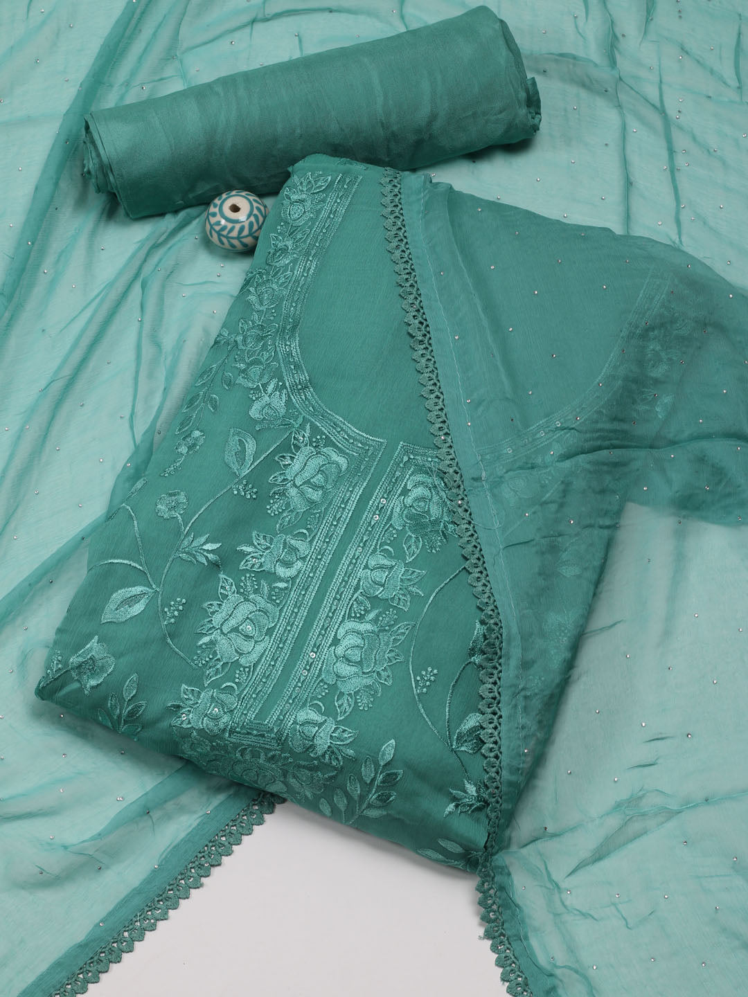 All Over Embroidery Chiffon Unstitched Suit Piece With Dupatta