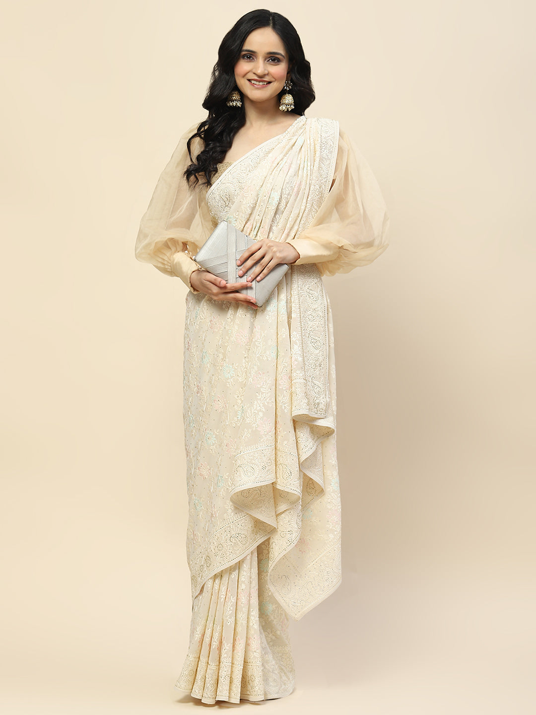 Note:The blouse shown in the pictures is just for Photoshoot purposes. The blouse you will get will be an attached running blouse.