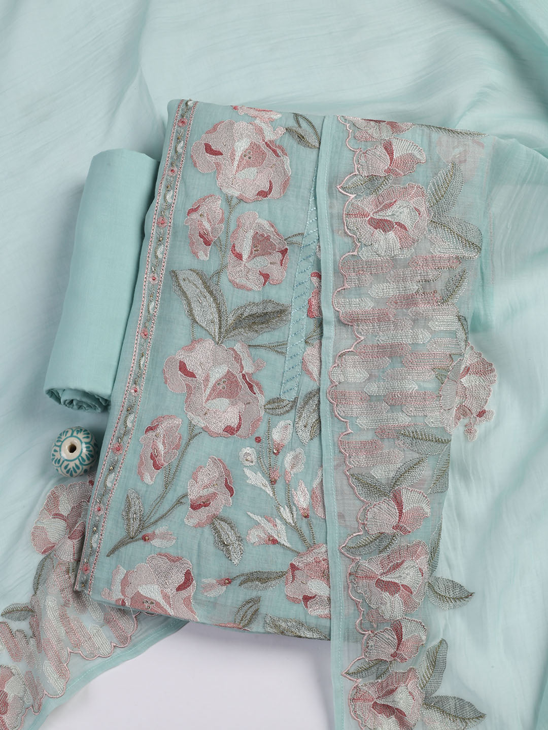Embroidery Chanderi Unstitched Suit With Dupatta