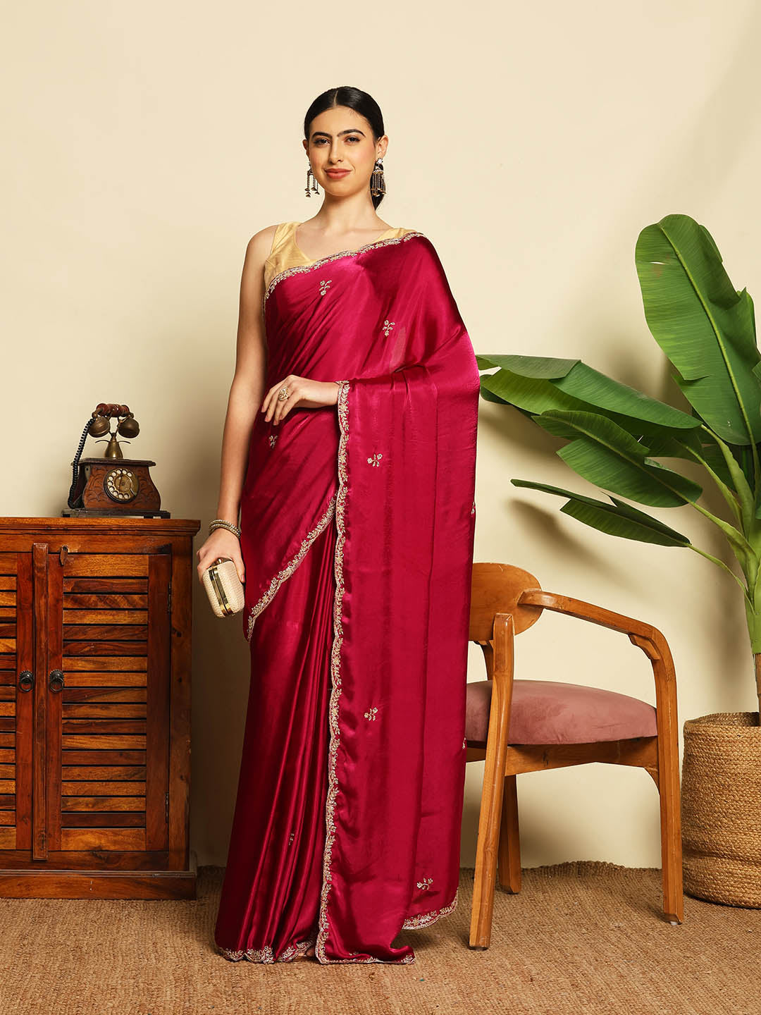 Note:The blouse shown in the pictures is just for Photoshoot purposes. The blouse you will get will be an attached running blouse.