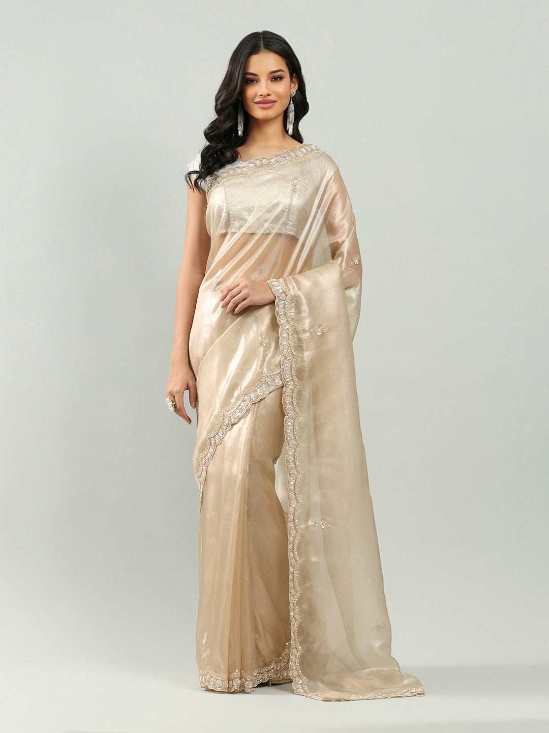 Note: The blouse shown in the pictures is just for Photoshoot purposes. The blouse you will get will be an attached running blouse.