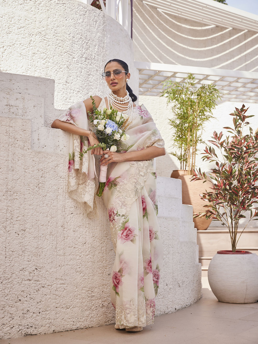 Digital Floral Printed Organza Saree
