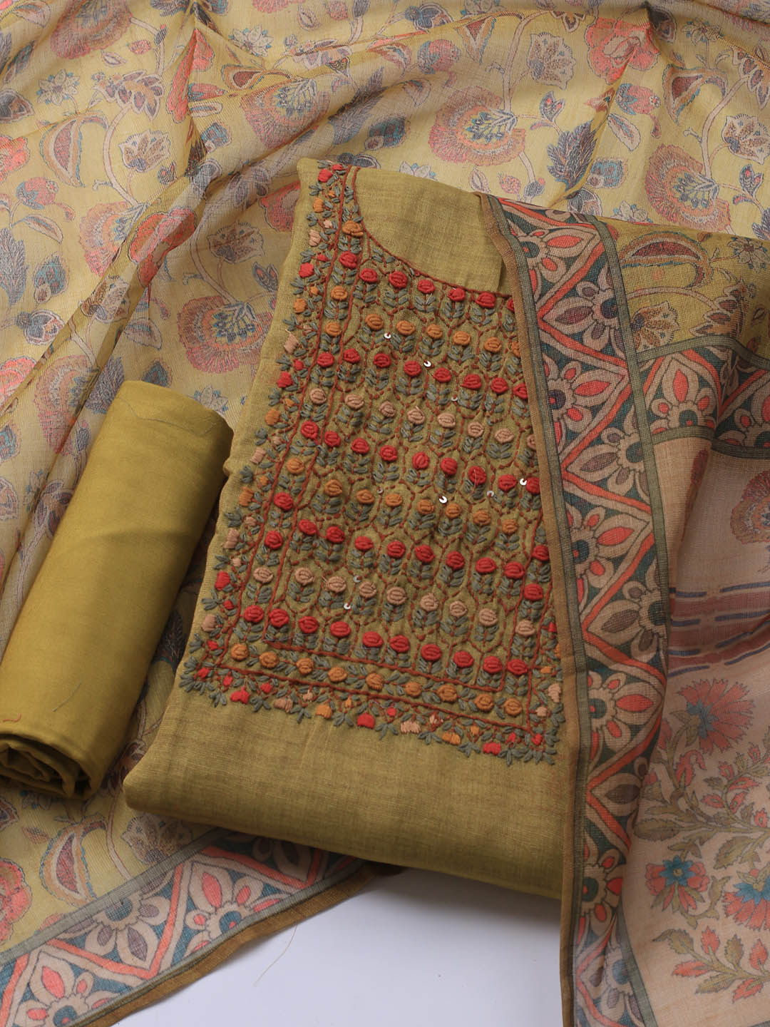Embroidered Tissue Unstitched Suit Piece With Dupatta