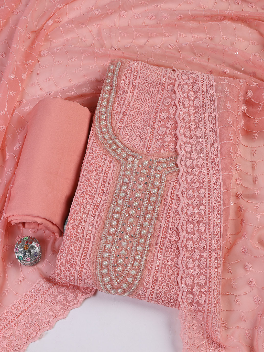 Chiken Work Georgette Unstitched Suit With Dupatta