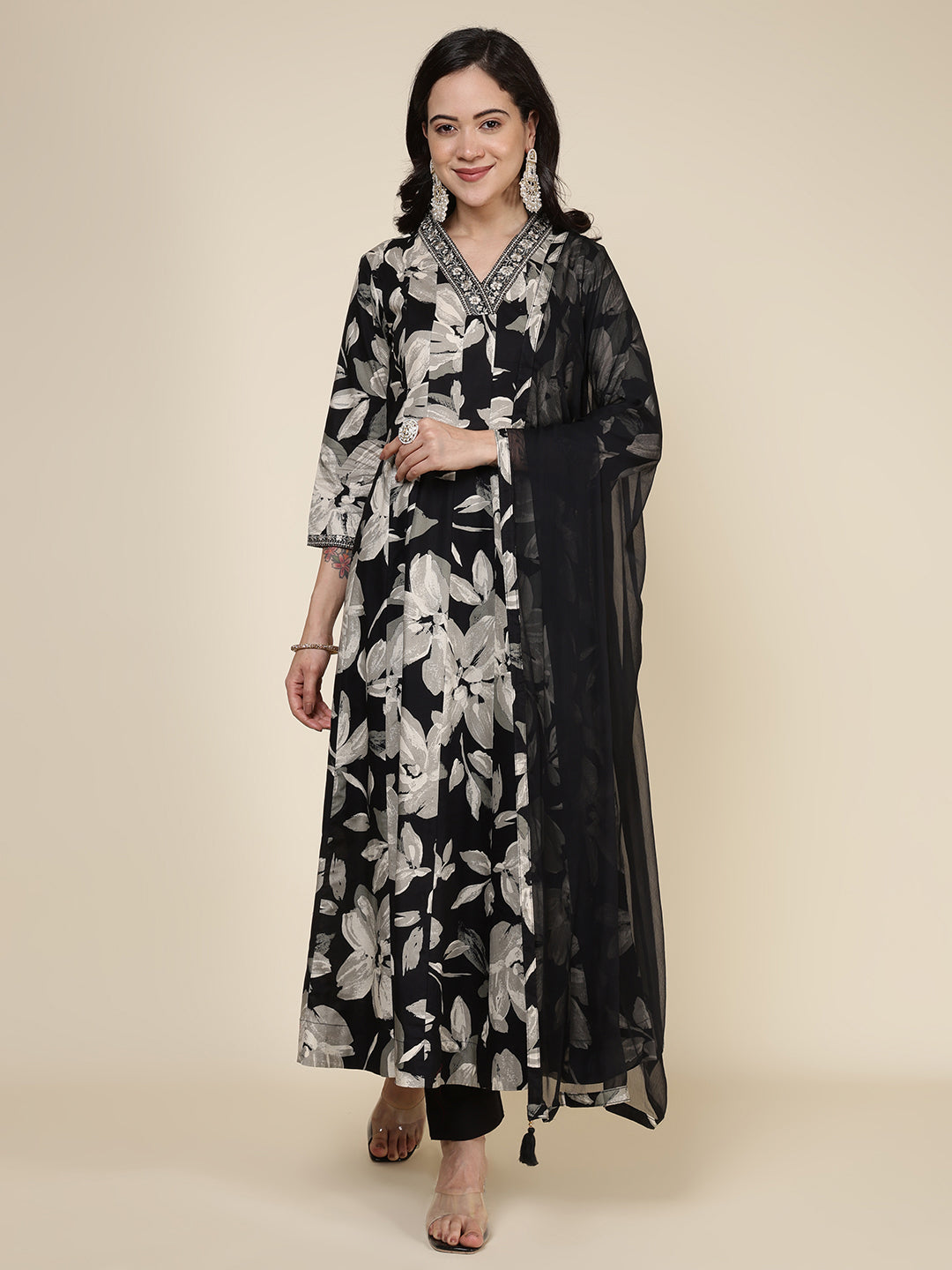 Printed Cotton Blend Kurta With Pants & Dupatta