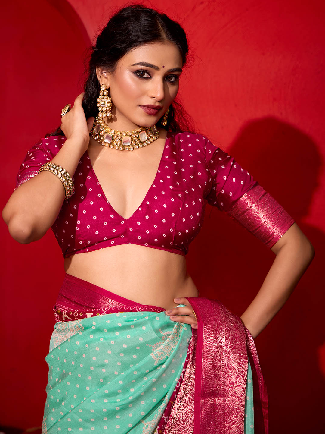 Note: The blouse shown in the pictures is just for Photoshoot purposes. The blouse you will get will be an attached running blouse.
