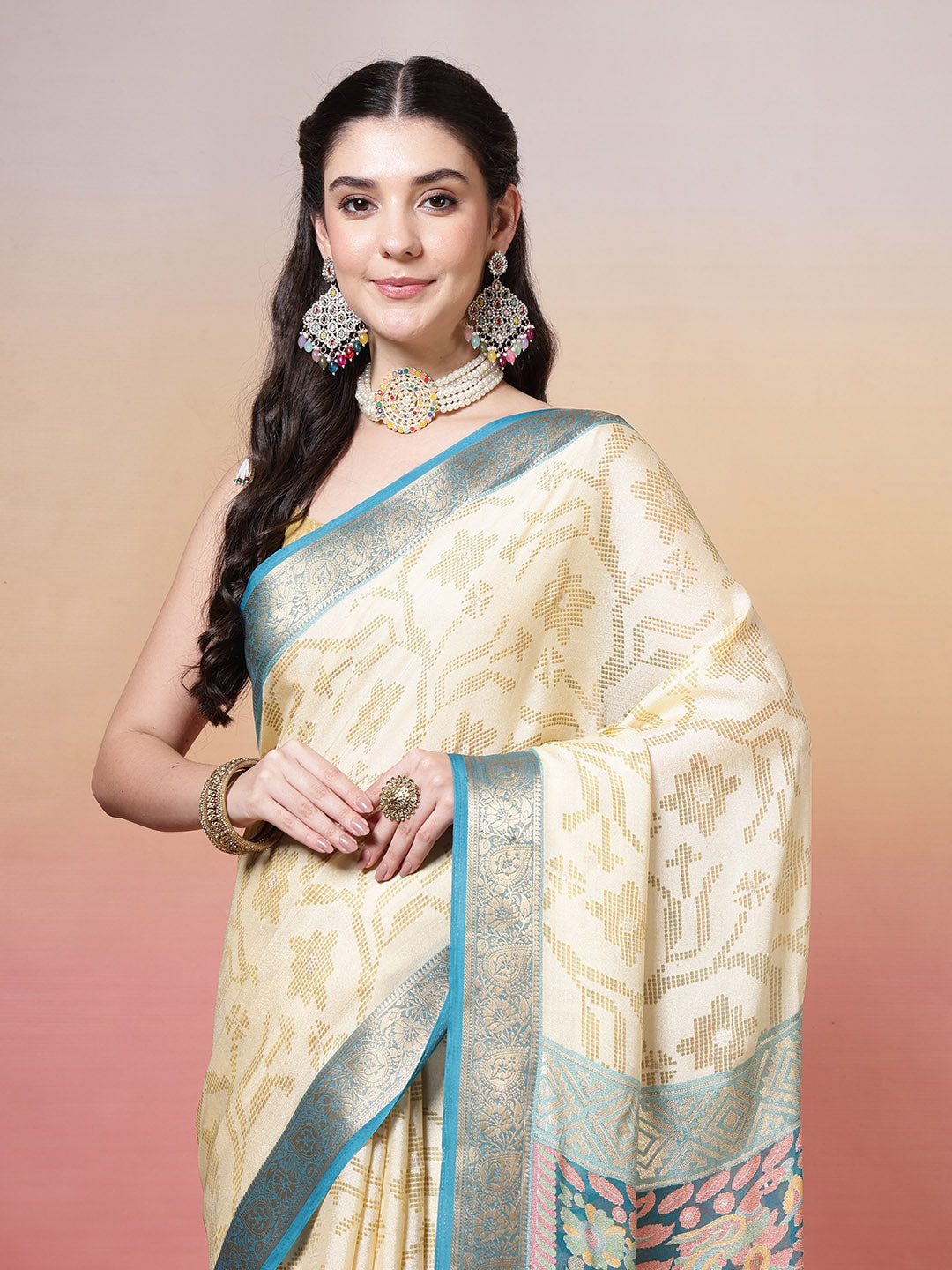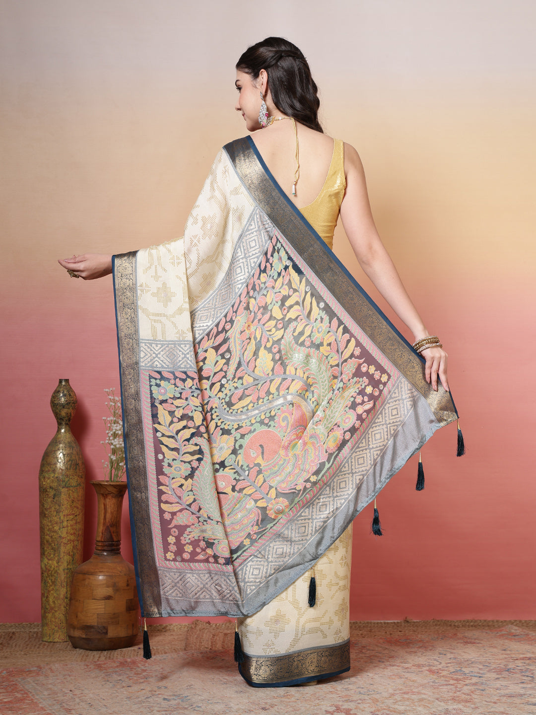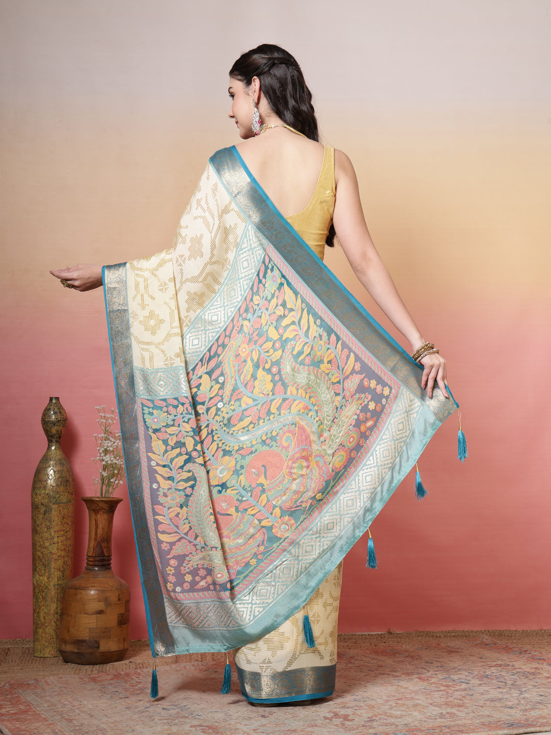 Note: The blouse shown in the pictures is just for Photoshoot purposes. The blouse you will get will be an attached running blouse.