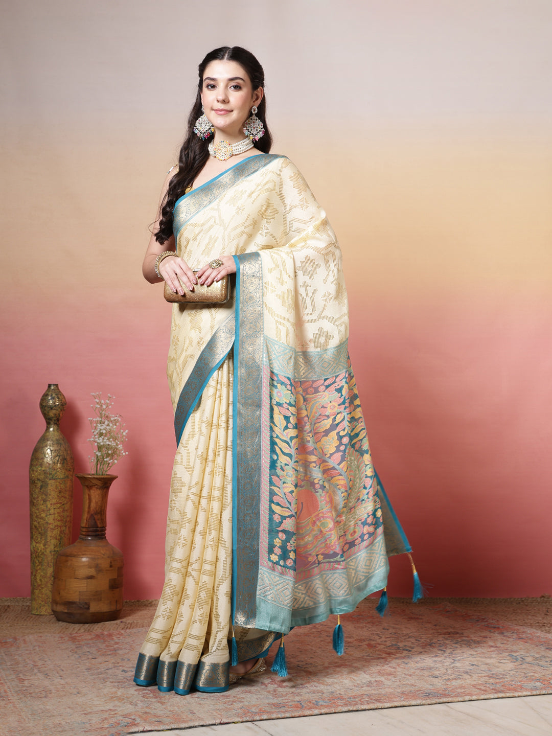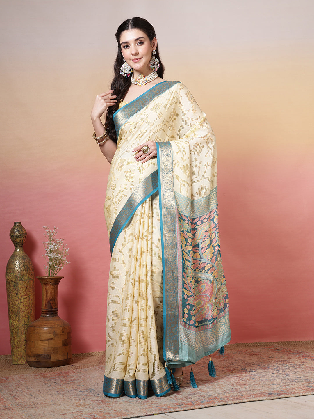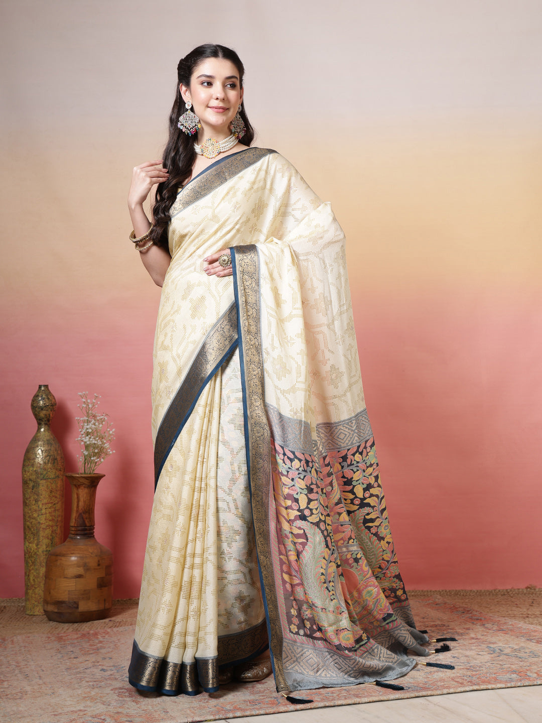Note: The blouse shown in the pictures is just for Photoshoot purposes. The blouse you will get will be an attached running blouse.