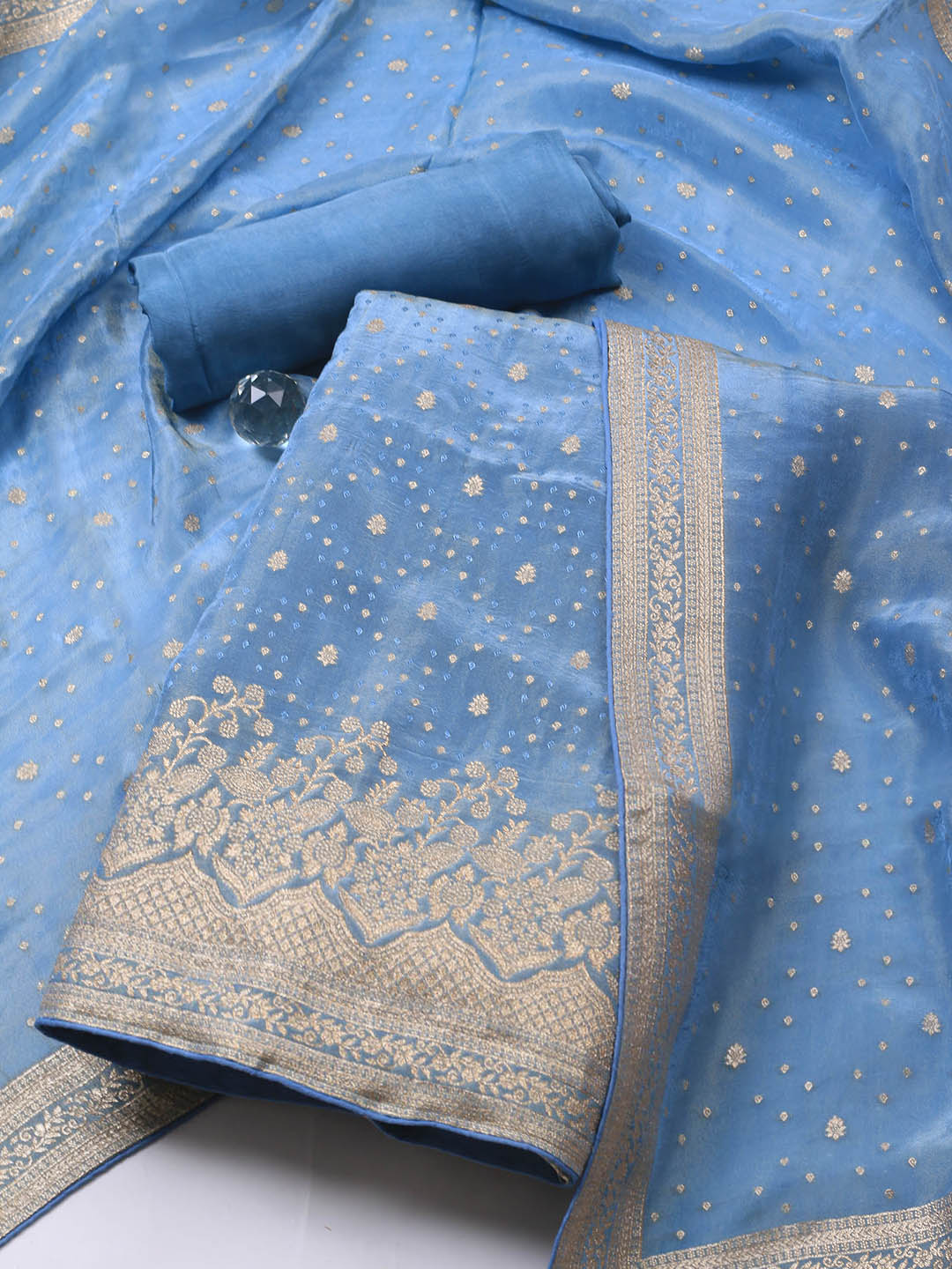 Embroidered Art Silk Unstitched Suit Piece With Dupatta