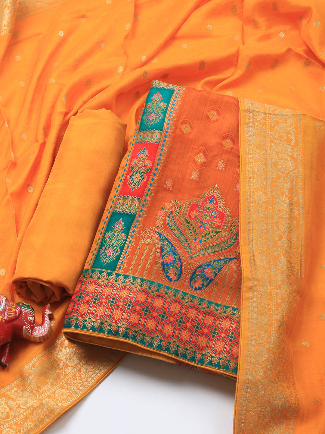 Embroidered Art Silk Unstitched Suit Piece With Dupatta