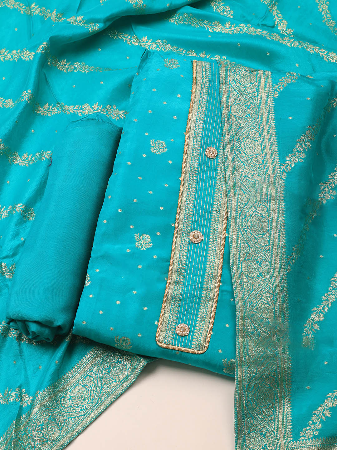 Embroidery Chanderi Unstitched Suit With Dupatta