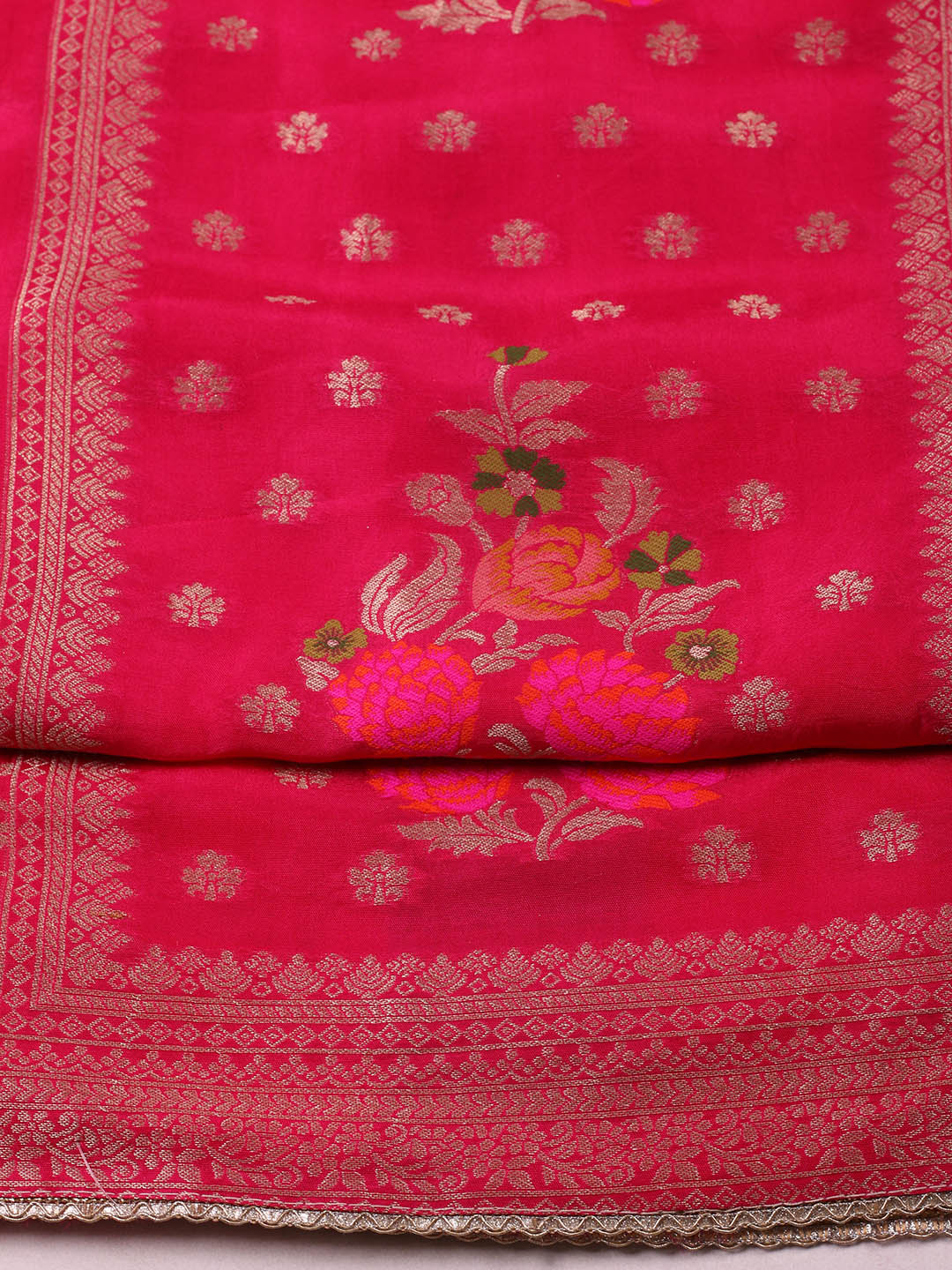 Woven Design Chanderi Rani Unstitched Suit With Pant & Dupatta
