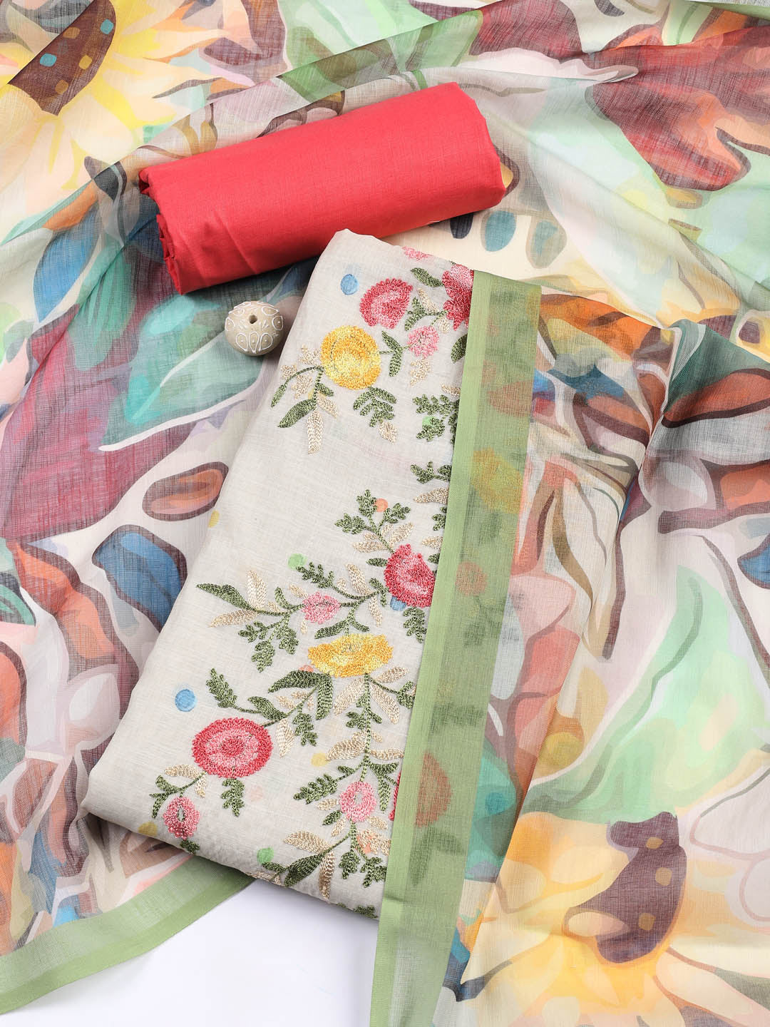 Embroidery Chanderi Unstitched Suit With Dupatta