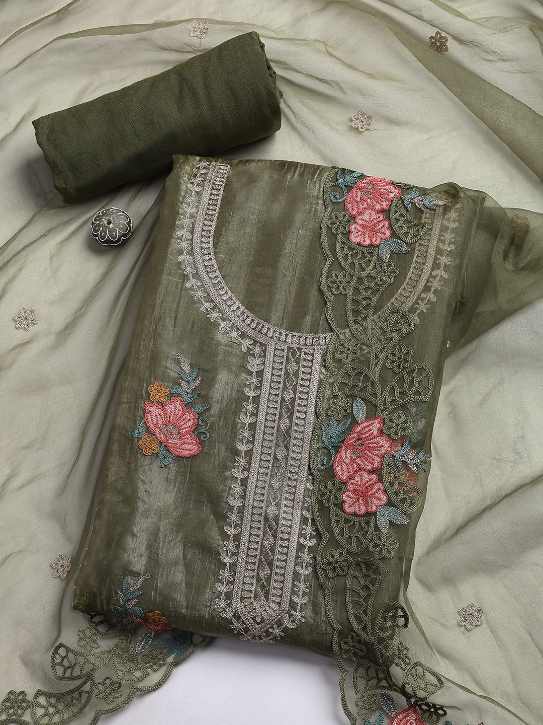 Neck Embroidery Organza Unstitched Suit Piece With Dupatta