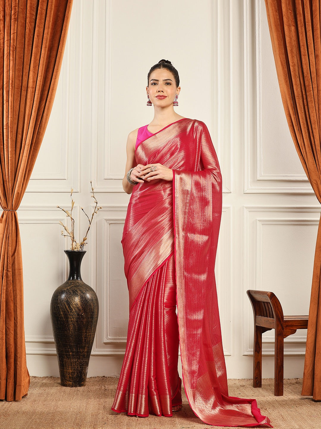 Note: The blouse shown in the pictures is just for Photoshoot purposes. The blouse you will get will be an attached running blouse.