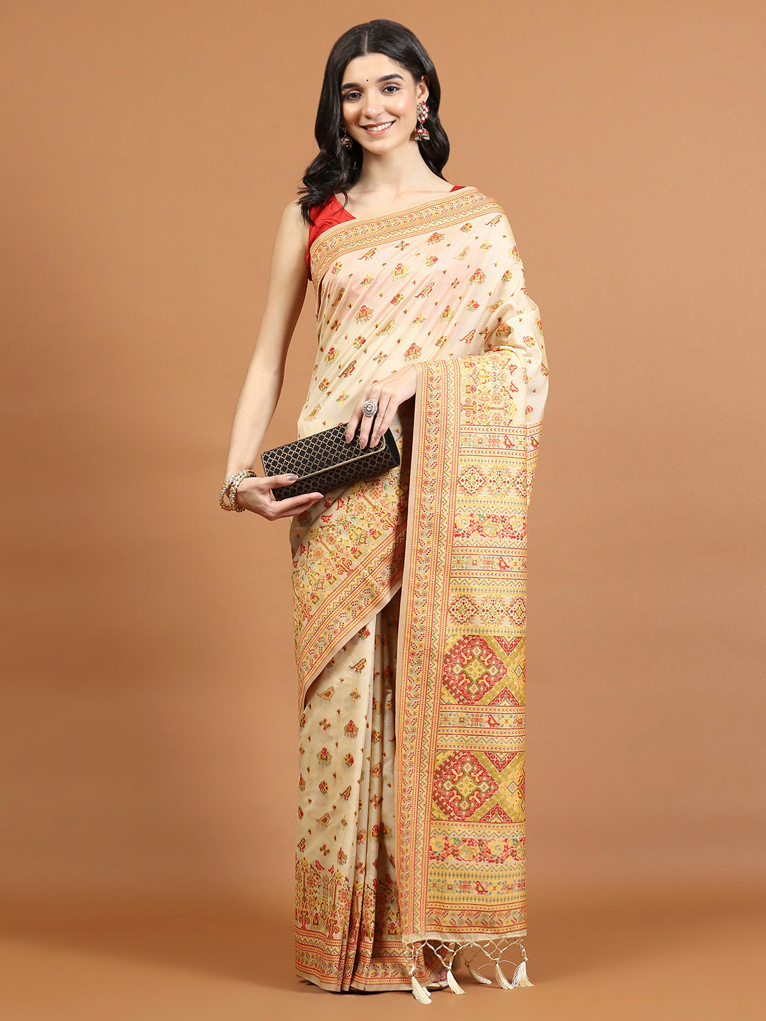 Note:The blouse shown in the pictures is just for Photoshoot purposes. The blouse you will get will be an attached running blouse.