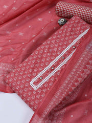 Neck Work Cotton Blend Unstitched Suit With Dupatta