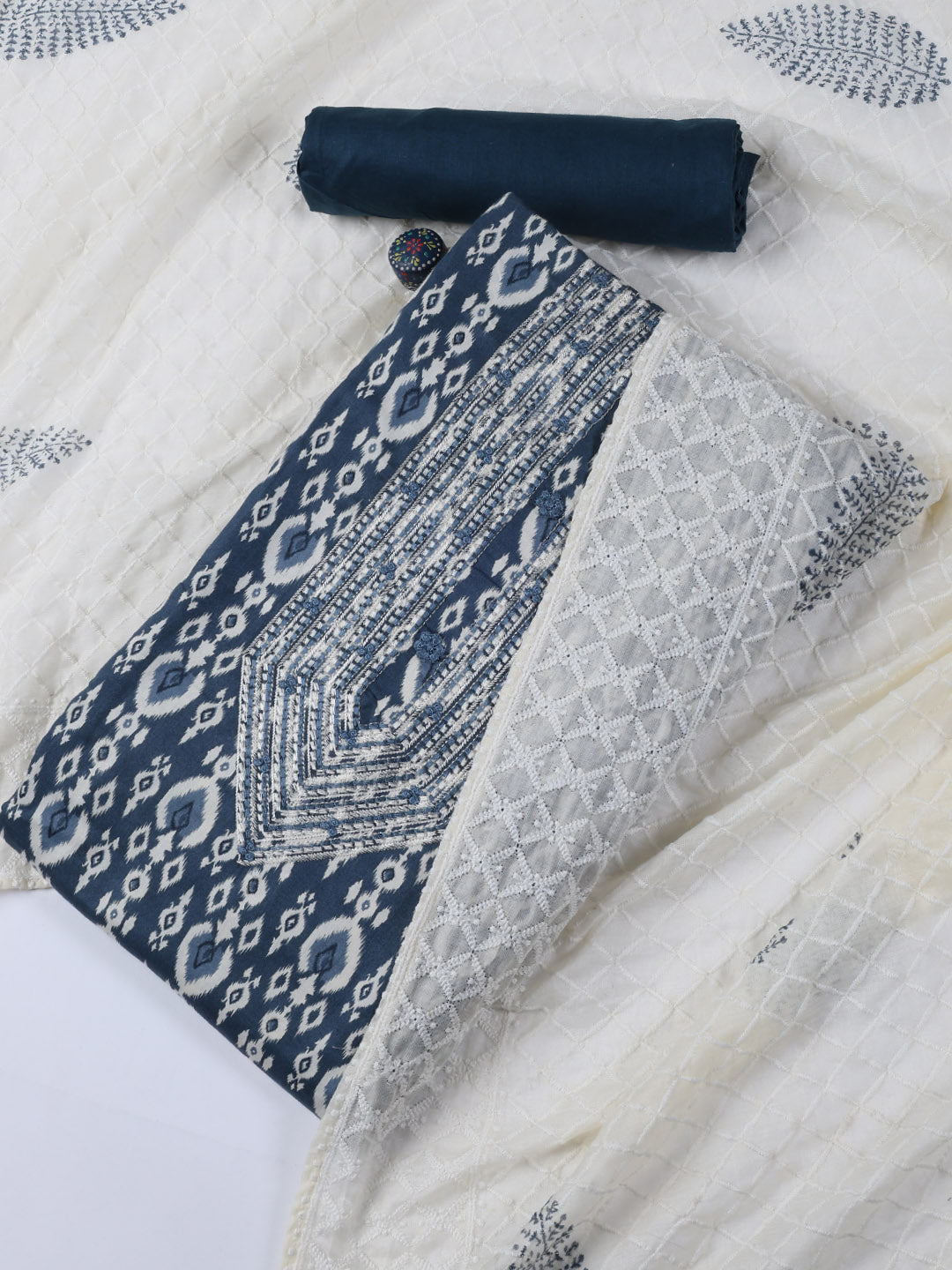 Neck Work Cotton Blend Unstitched Suit With Dupatta