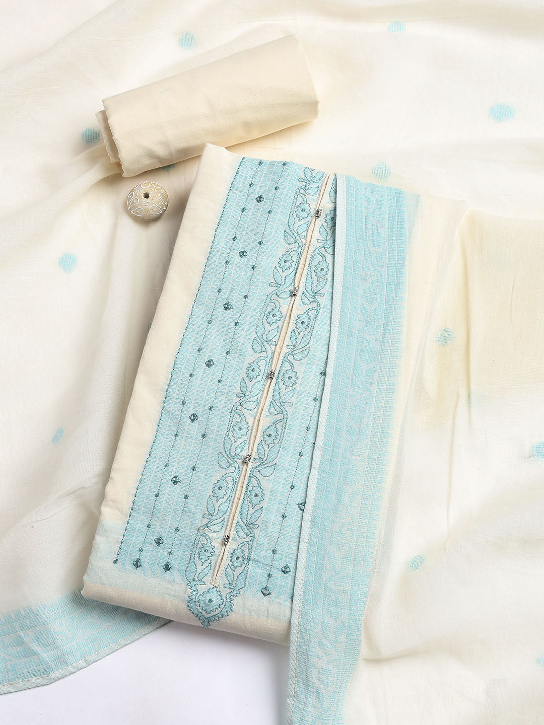 Neck Embroidery Cotton Blend Unstitched Suit With Dupatta