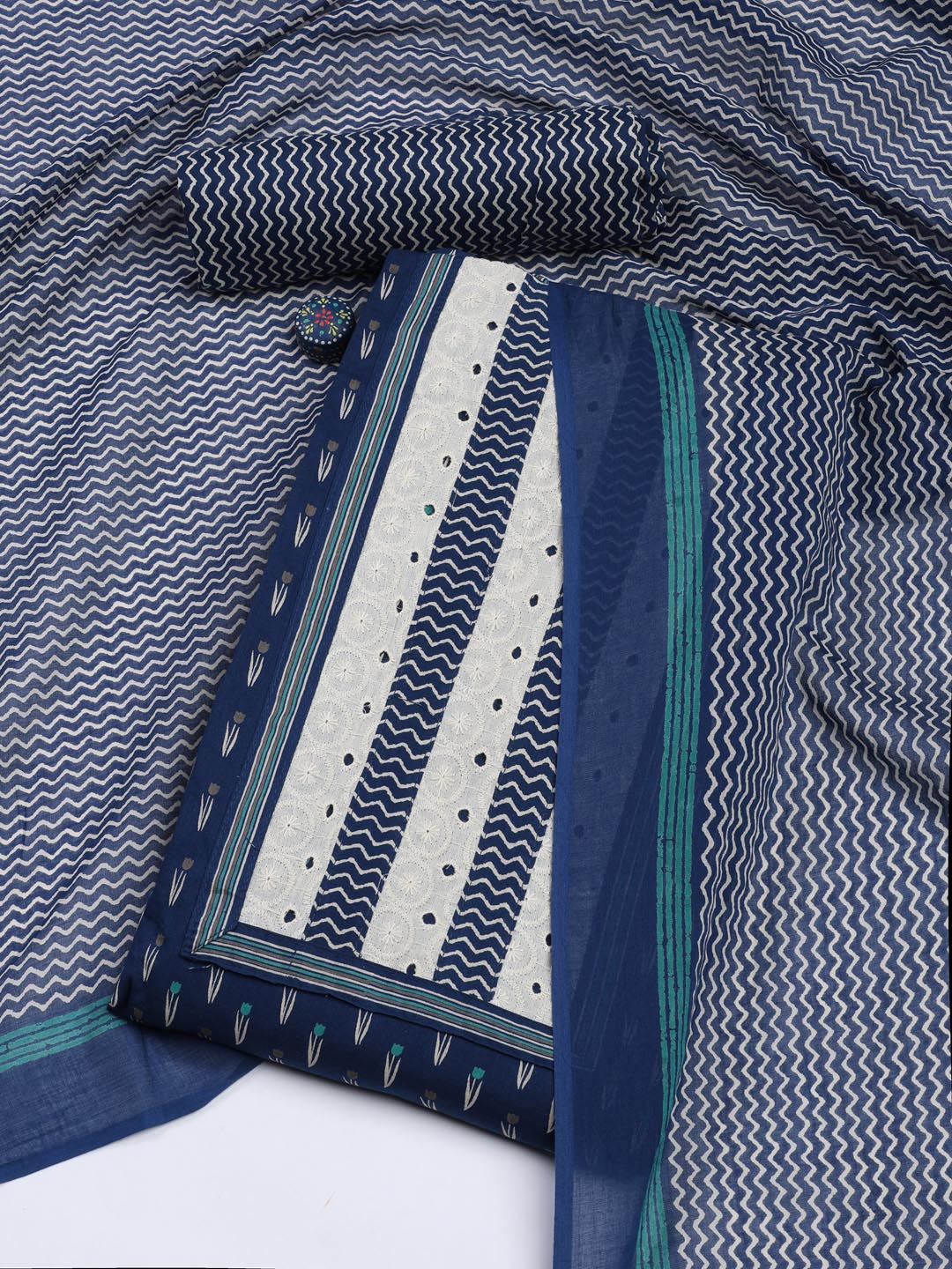 Printed Cotton Blend Unstitched Suit With Dupatta