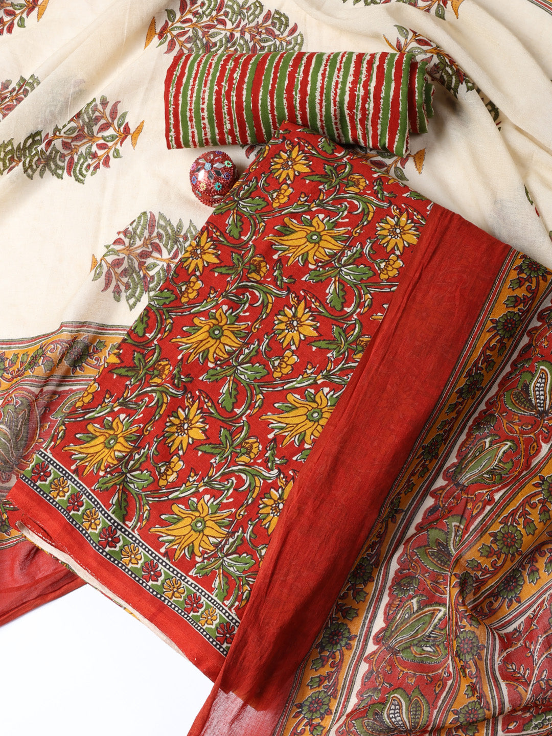 Printed Cotton Blend Unstitched Suit With Dupatta
