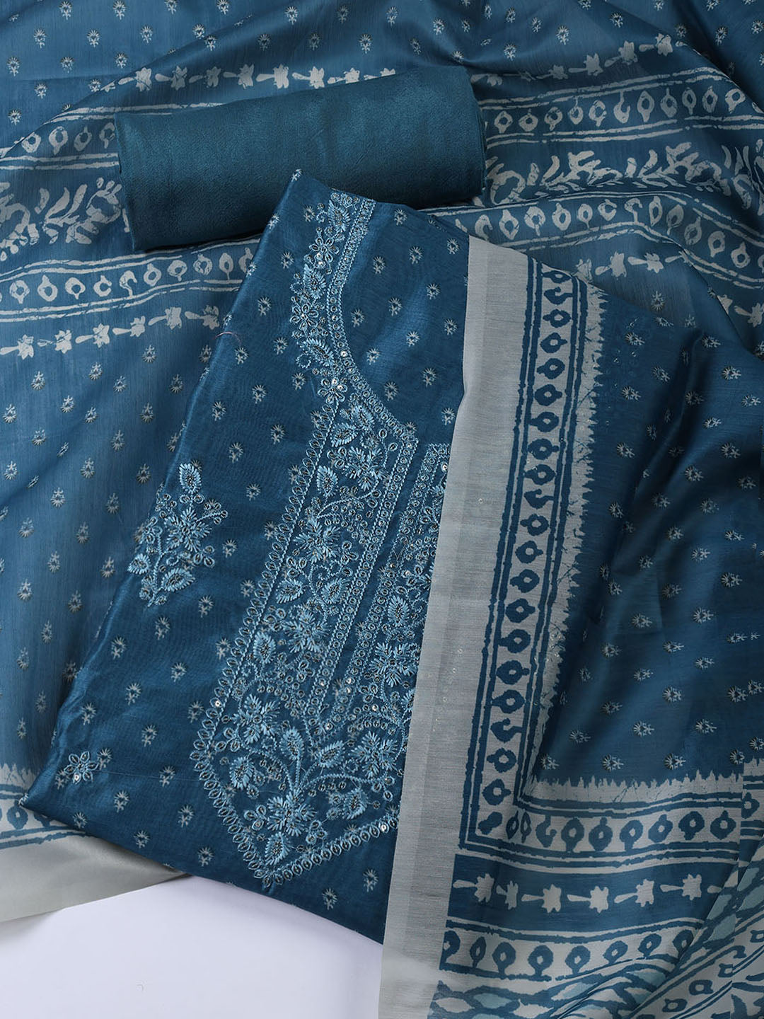 Neck Embroidery Chanderi Unstitched Suit With Dupatta