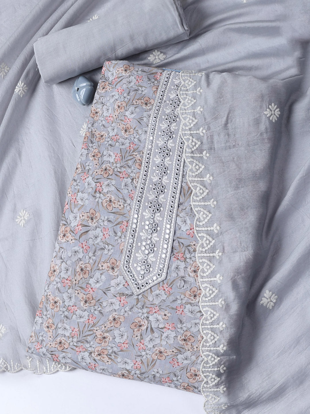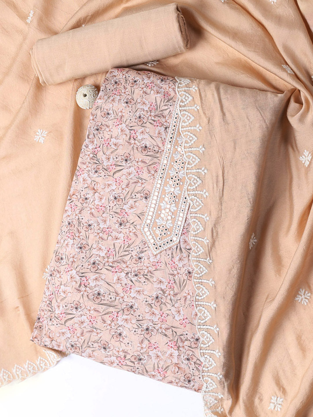 Printed Cotton Blend Unstitched Suit With Dupatta