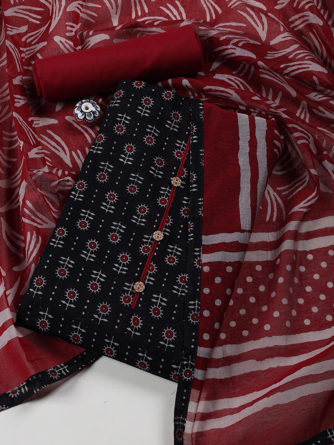 Printed Cotton Blend Unstitched Suit With Dupatta