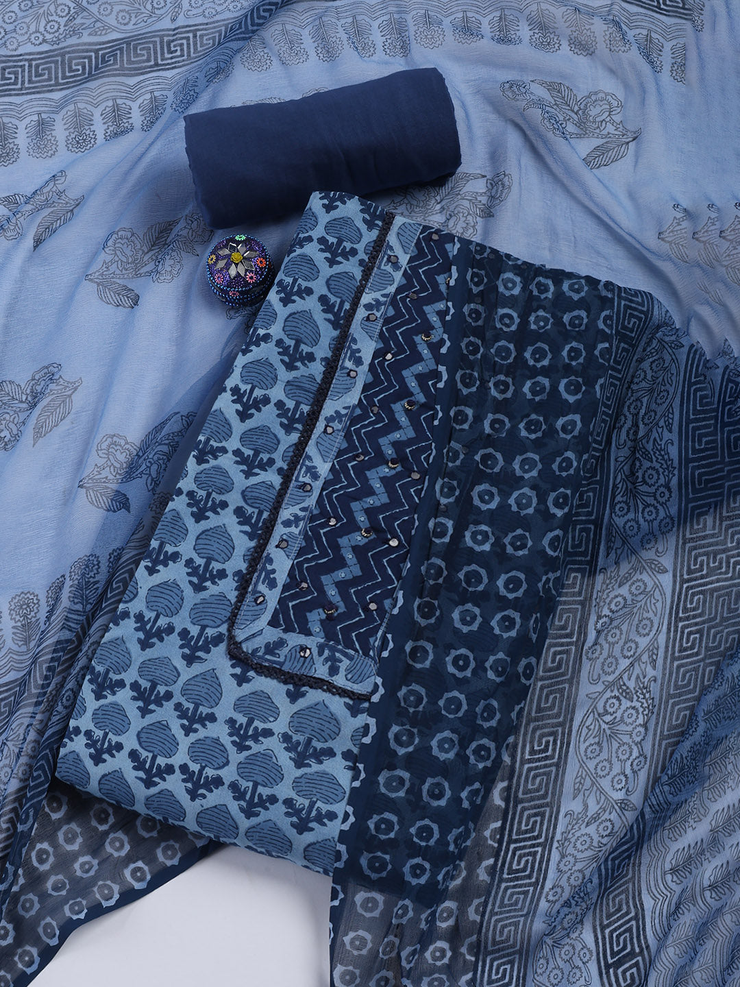 Printed Cotton Blend Unstitched Suit With Dupatta