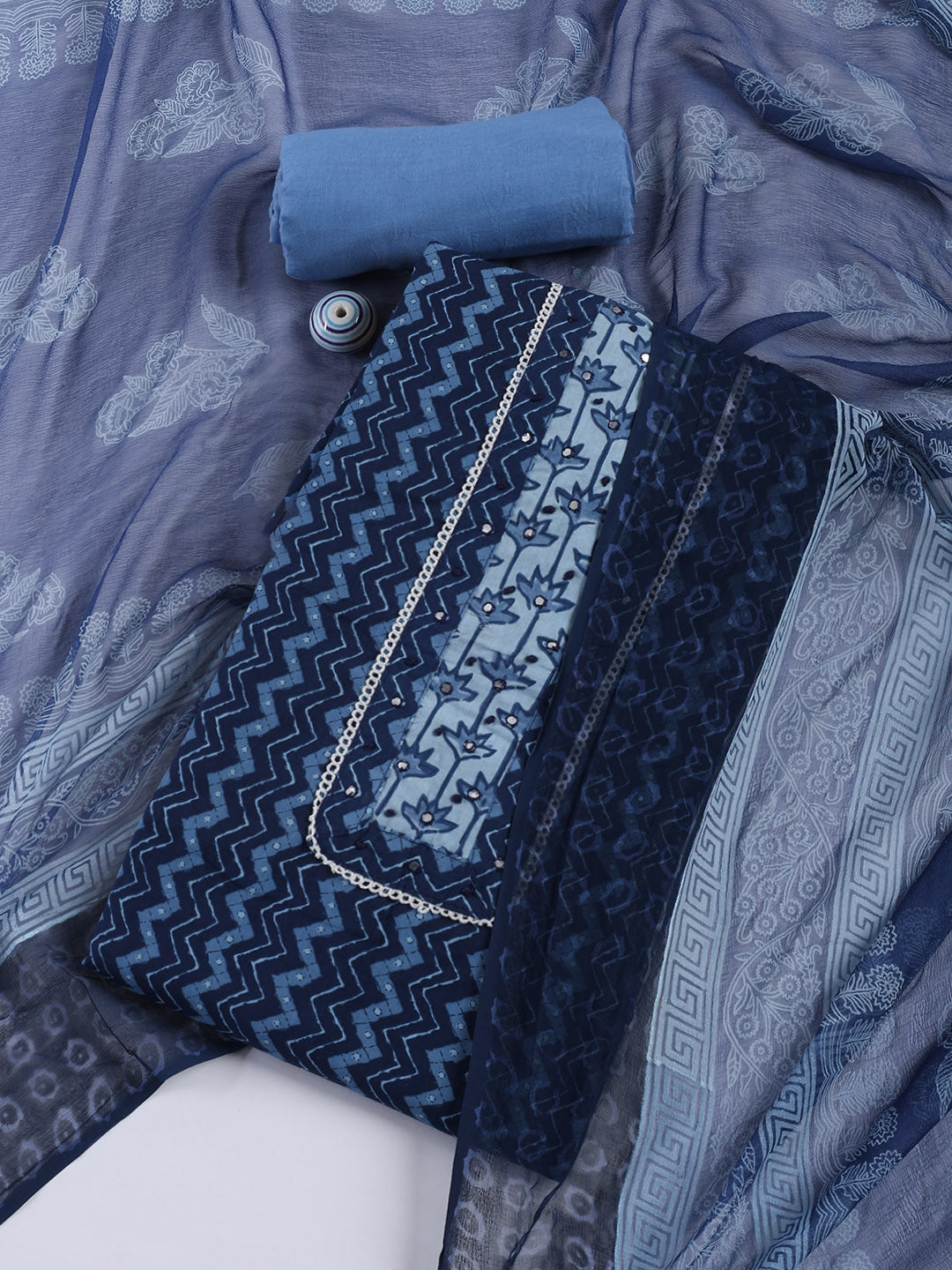 Printed Cotton Blend Unstitched Suit With Dupatta