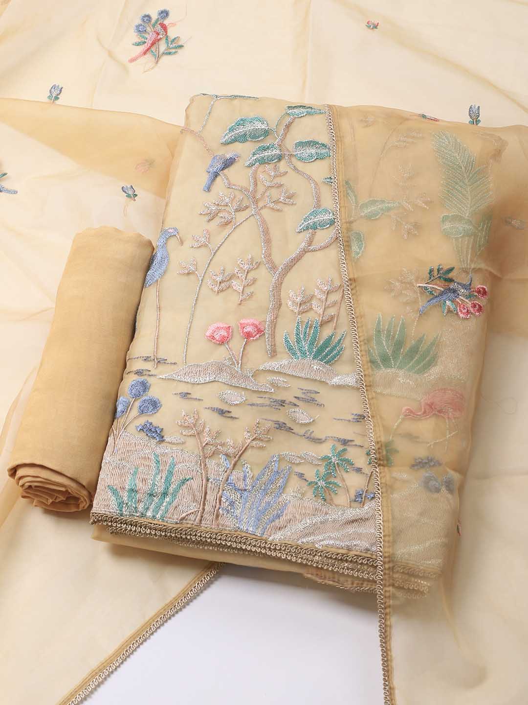 Neck Embroidered Organza Unstitched Suit Piece With Dupatta