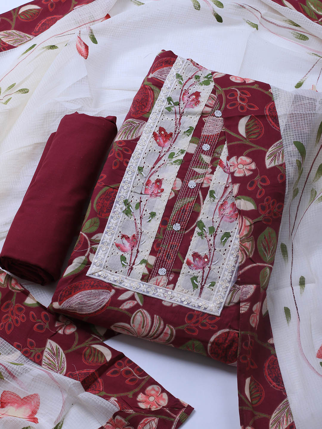 Patch Neck Cotton Blend Unstitched Suit Piece With Dupatta