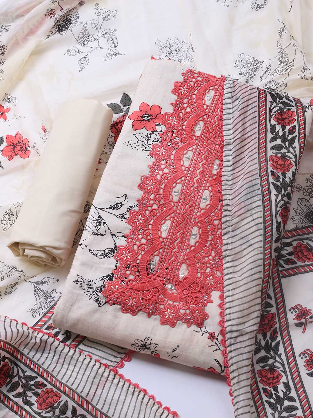 Patch Neck Cotton Blend Unstitched Suit Piece With Dupatta
