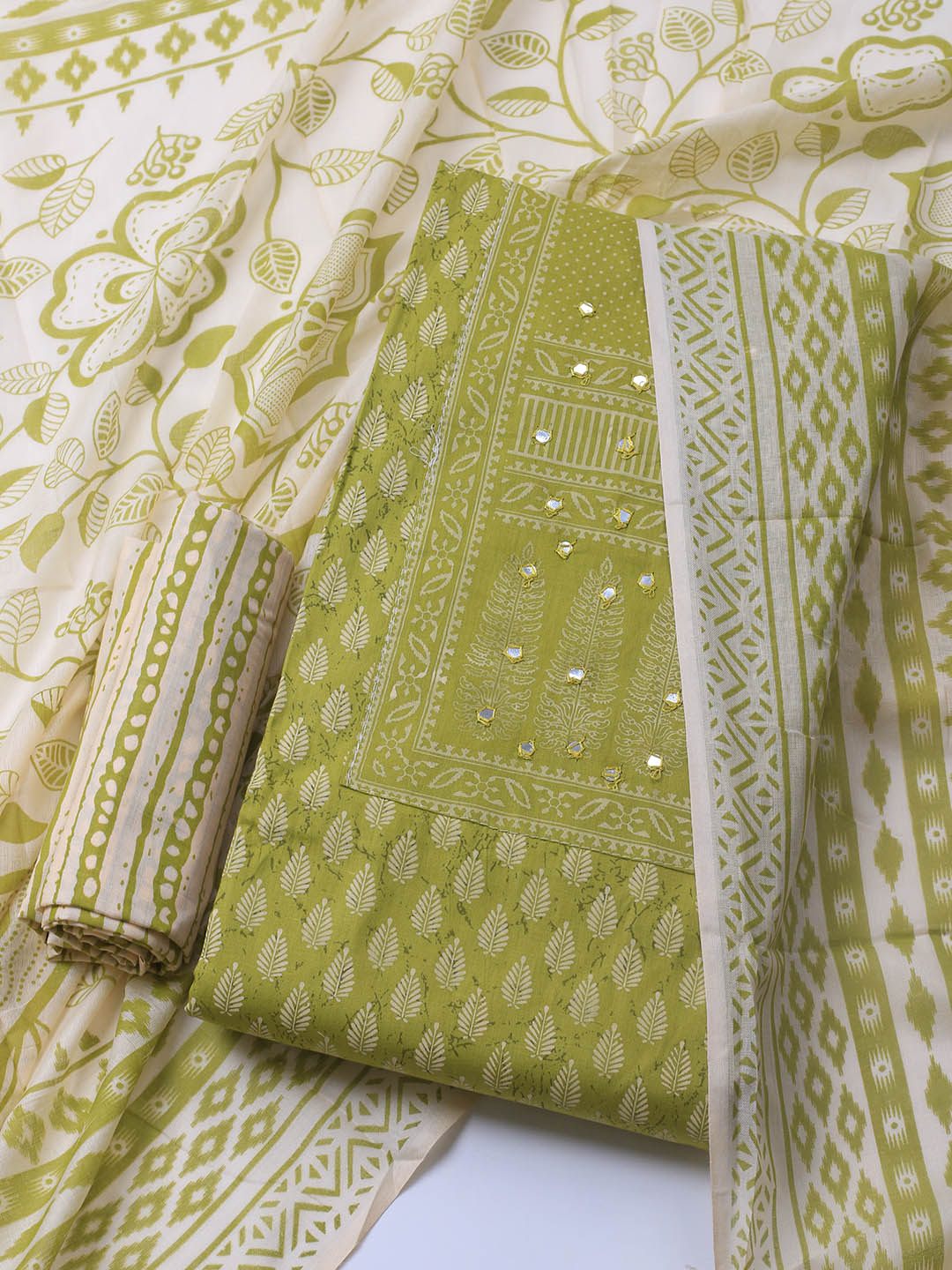 Printed Cotton Blend Unstitched Suit With Dupatta