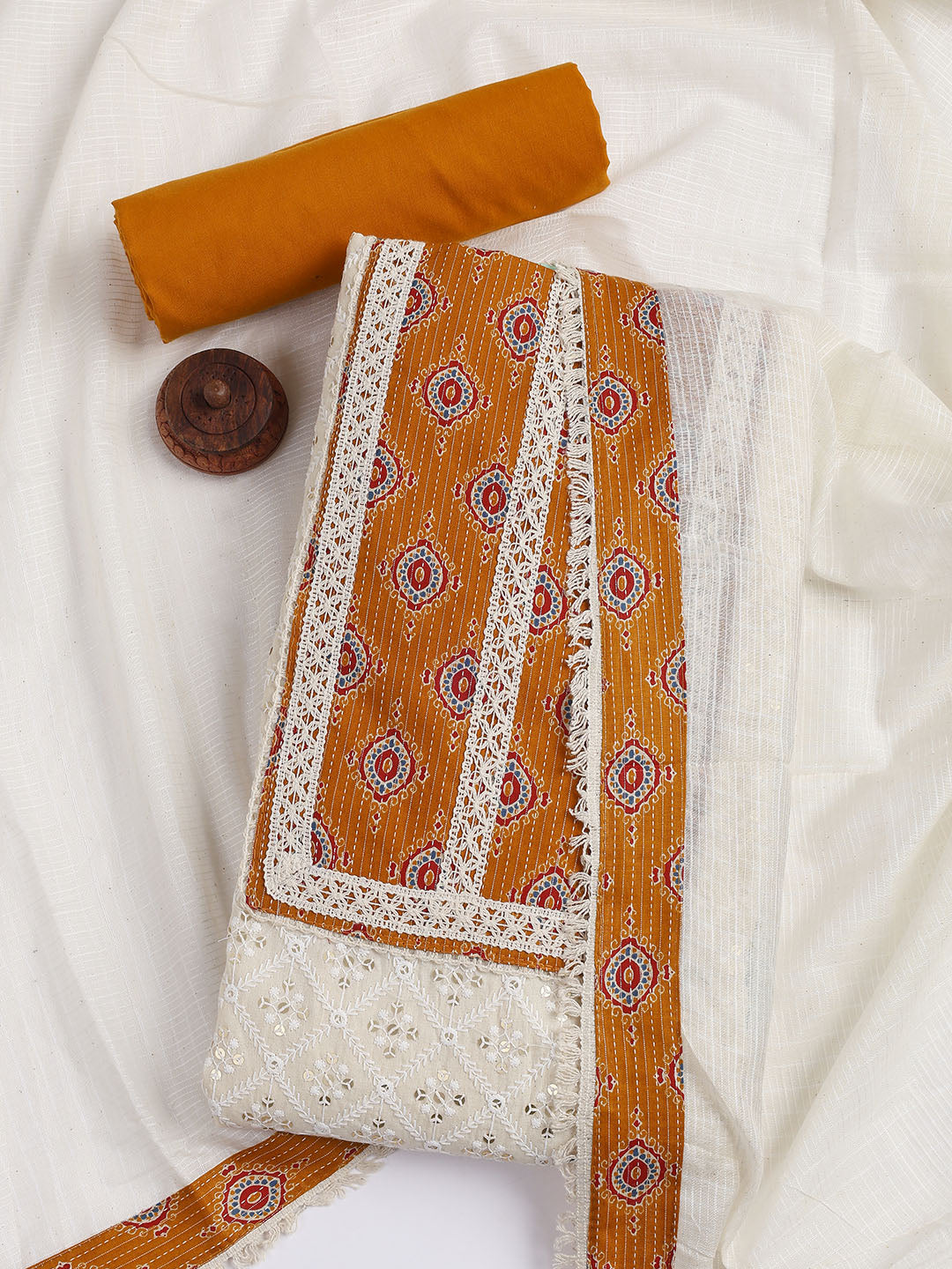 Printed Cotton Blend Unstitched Suit Piece With Dupatta