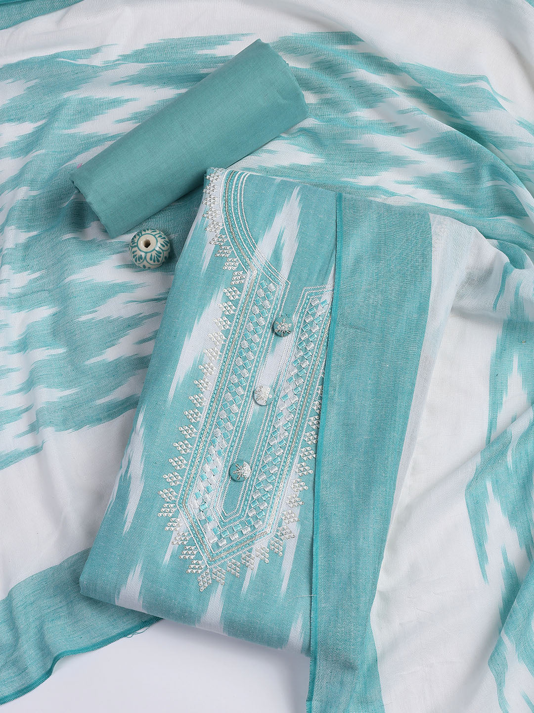 Neck Embroidered Cotton Blend Unstitched Suit Piece With Dupatta