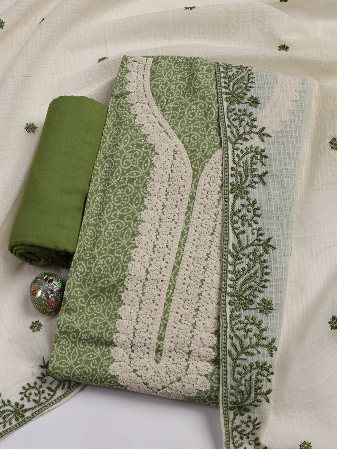 Embroidered Cotton Blend Unstitched Suit Piece With Dupatta