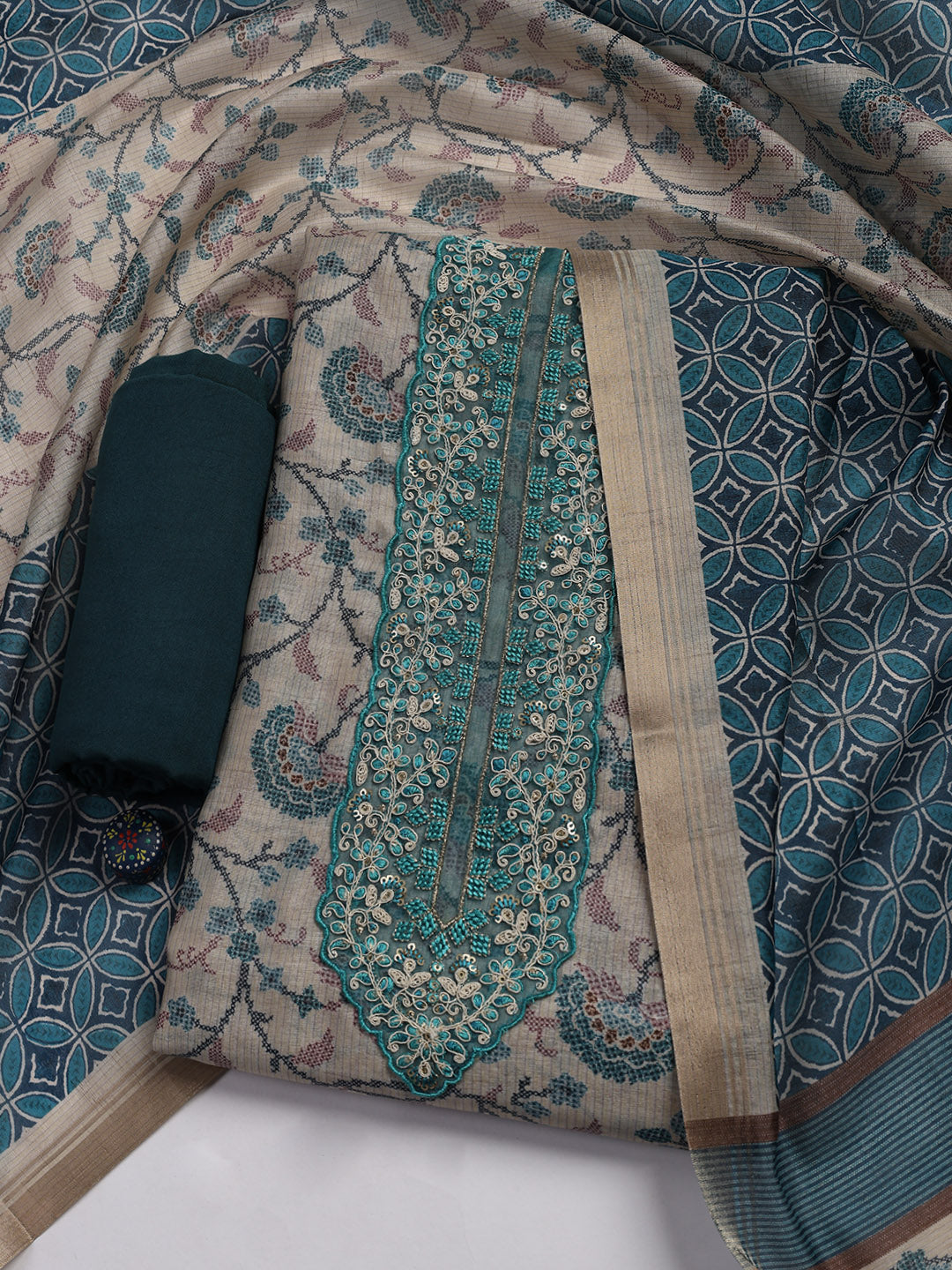 Embroidered Chanderi Unstitched Suit Piece With Dupatta