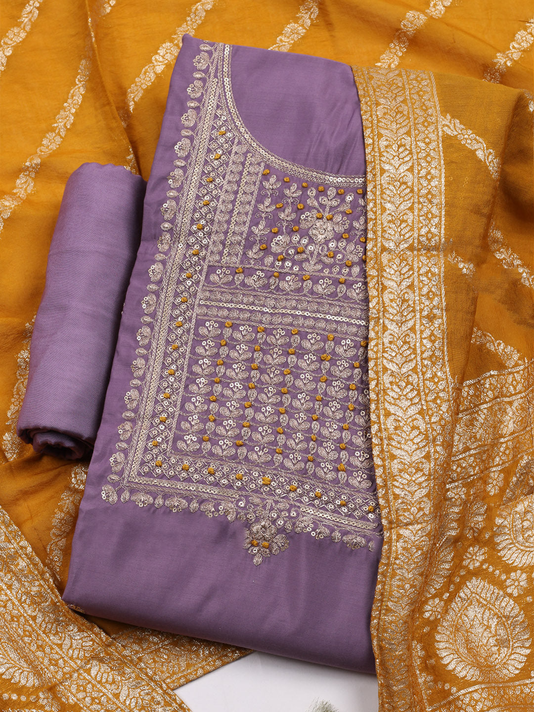 Embroidered Chanderi Unstitched Suit Piece With Dupatta