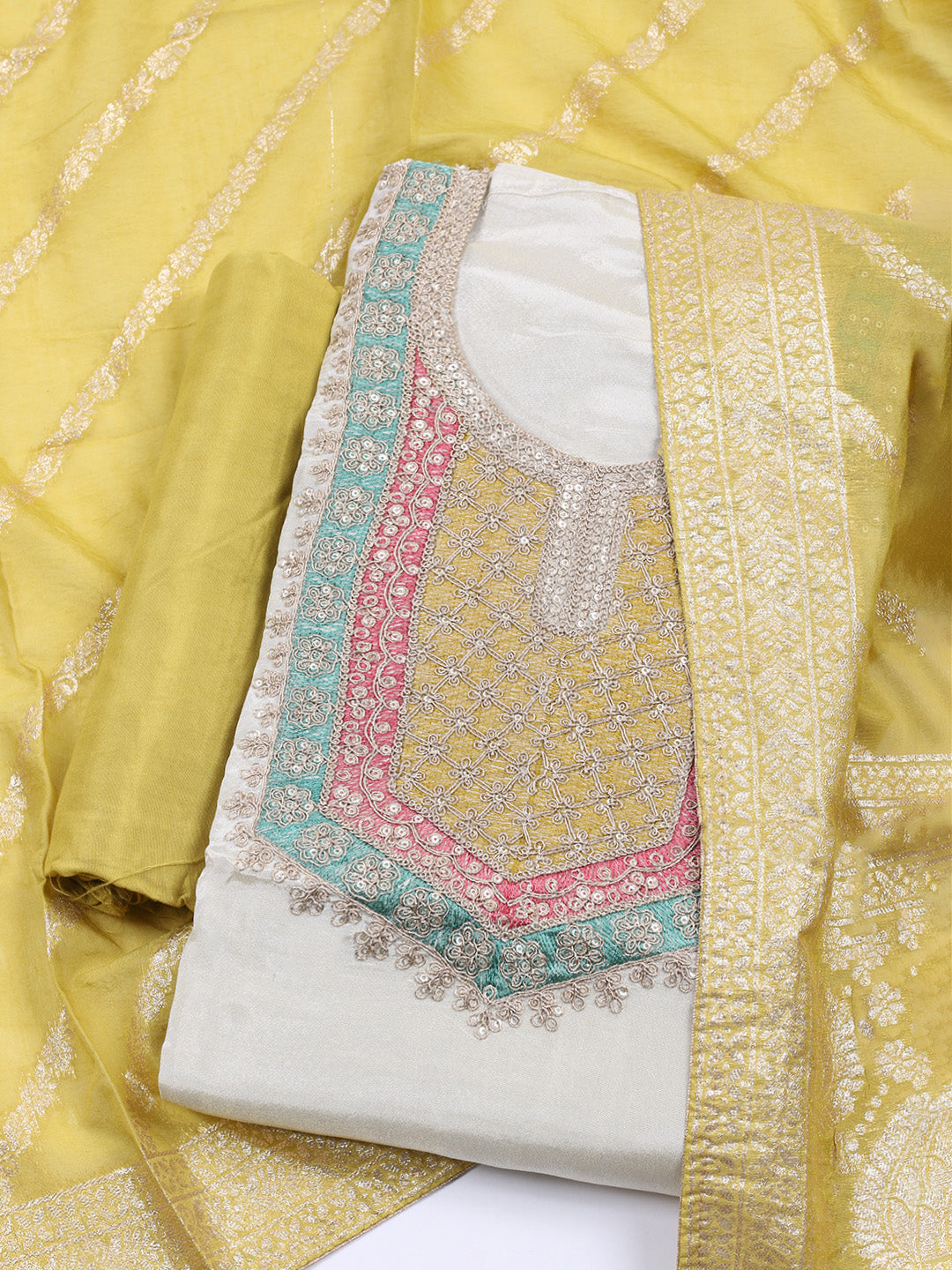 Neck Embroidered Tissue Unstitched Suit Piece With Dupatta