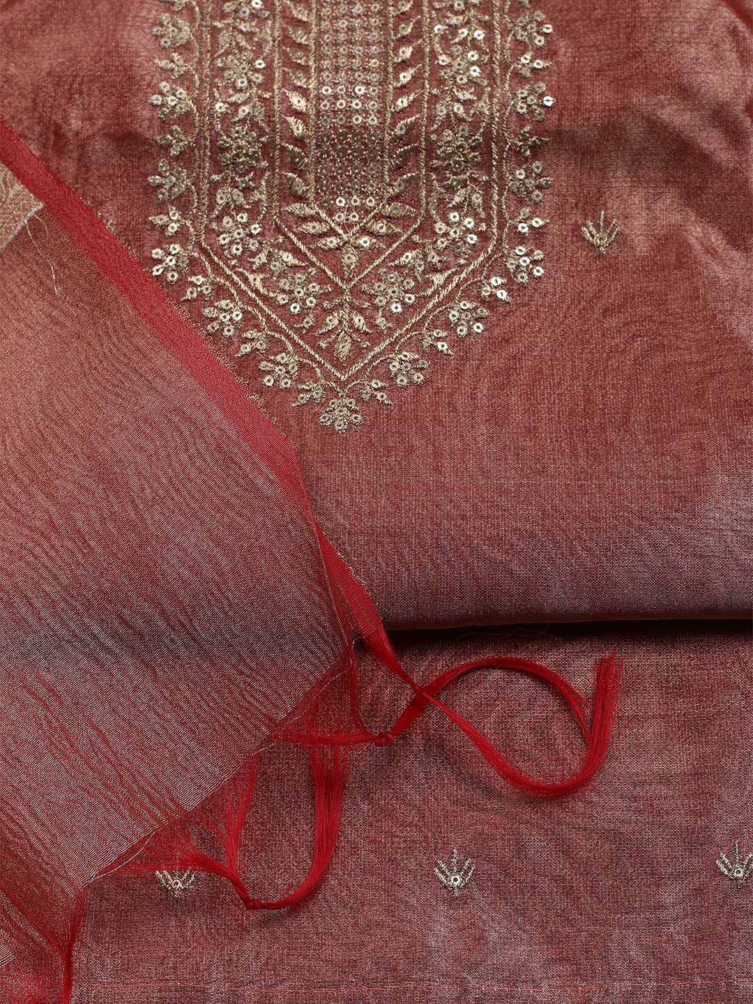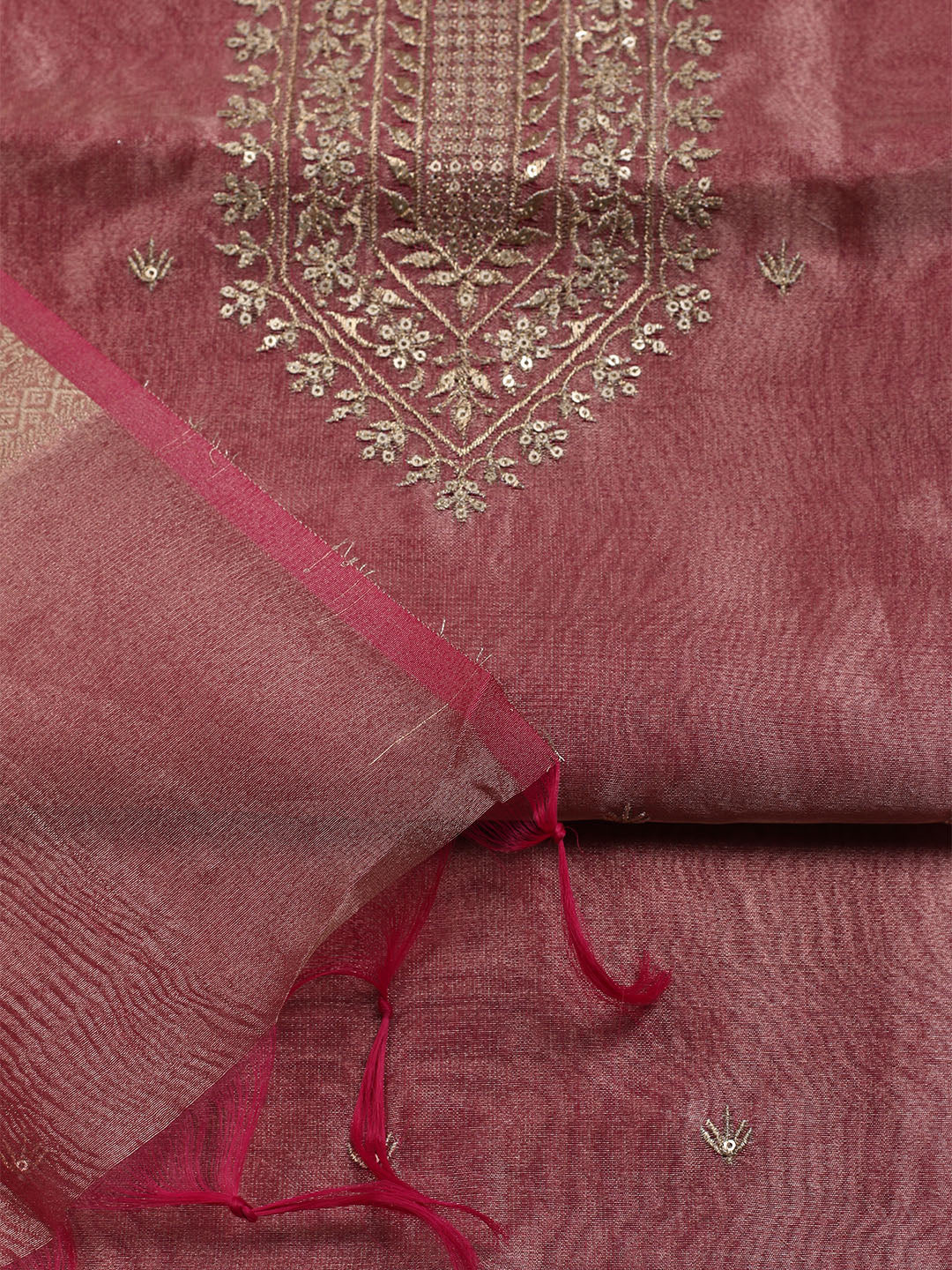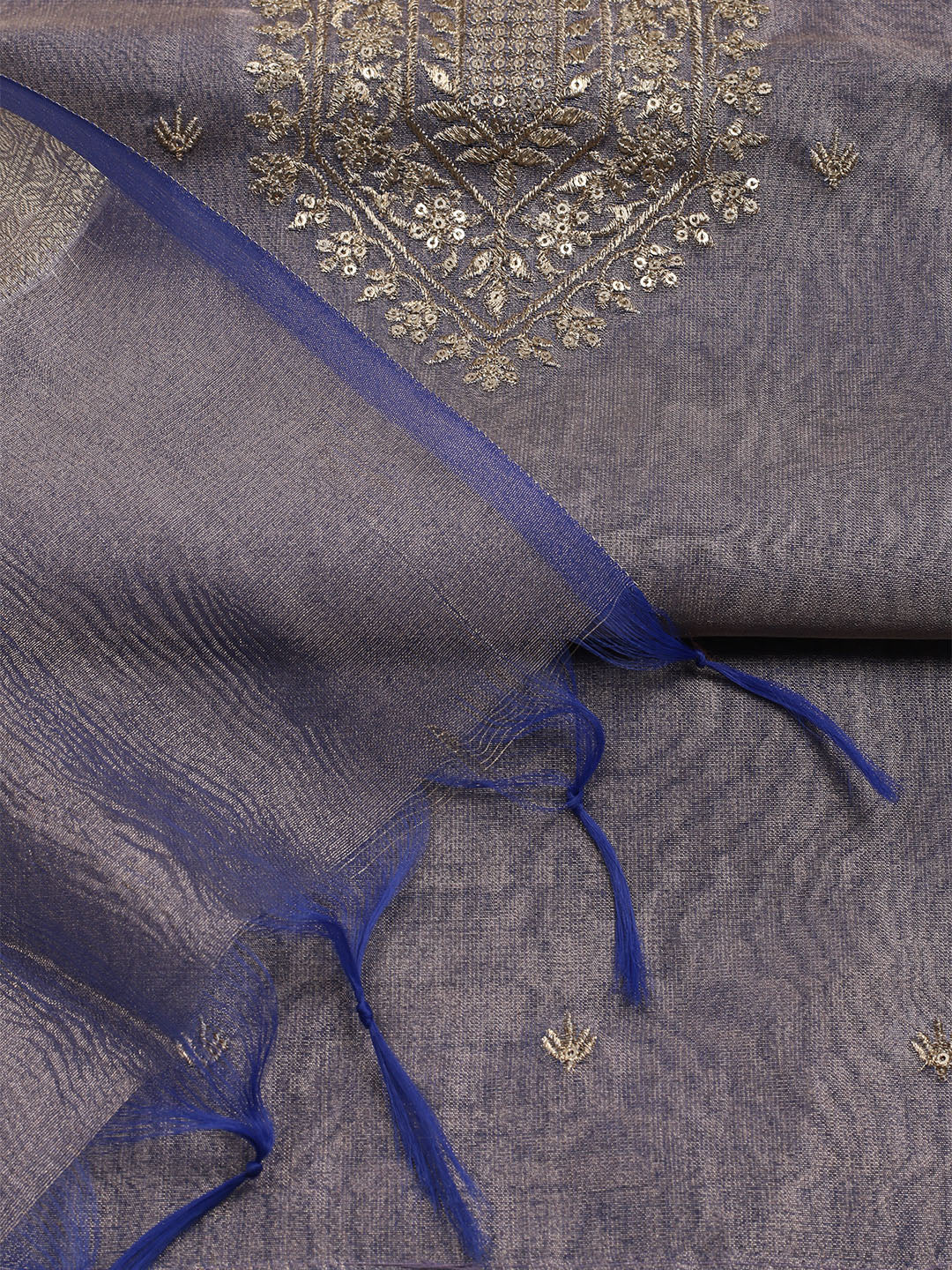 Neck Embroidered Tissue Unstitched Suit With Dupatta