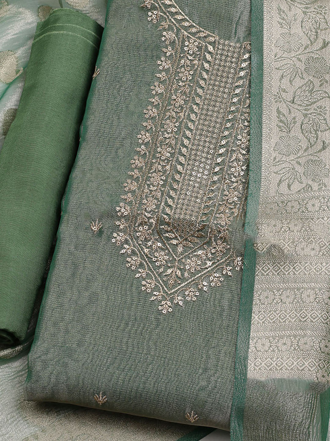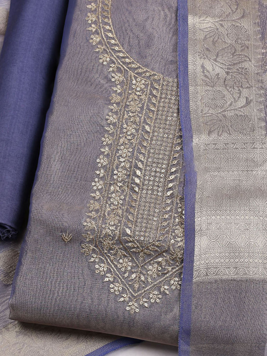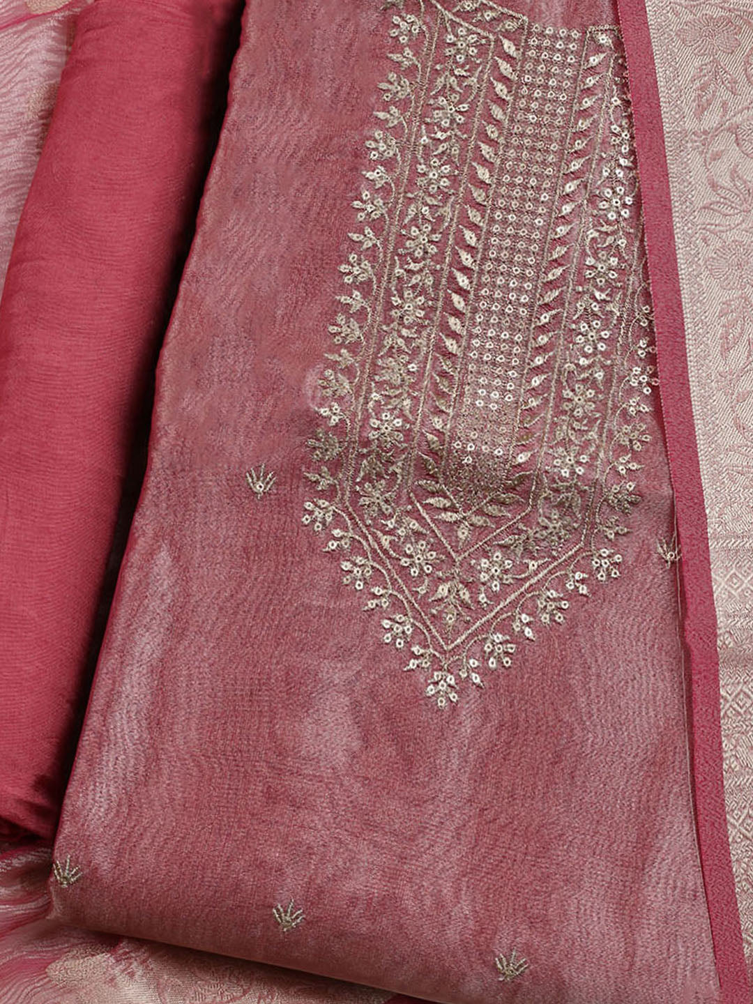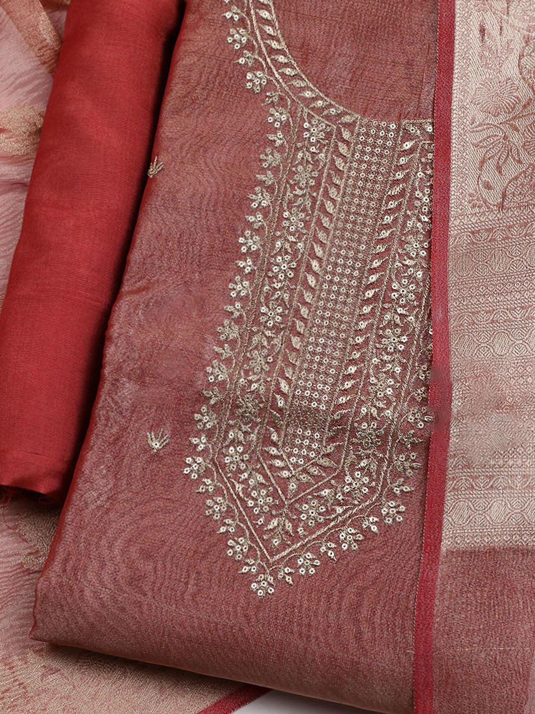 Neck Embroidered Tissue Unstitched Suit With Dupatta