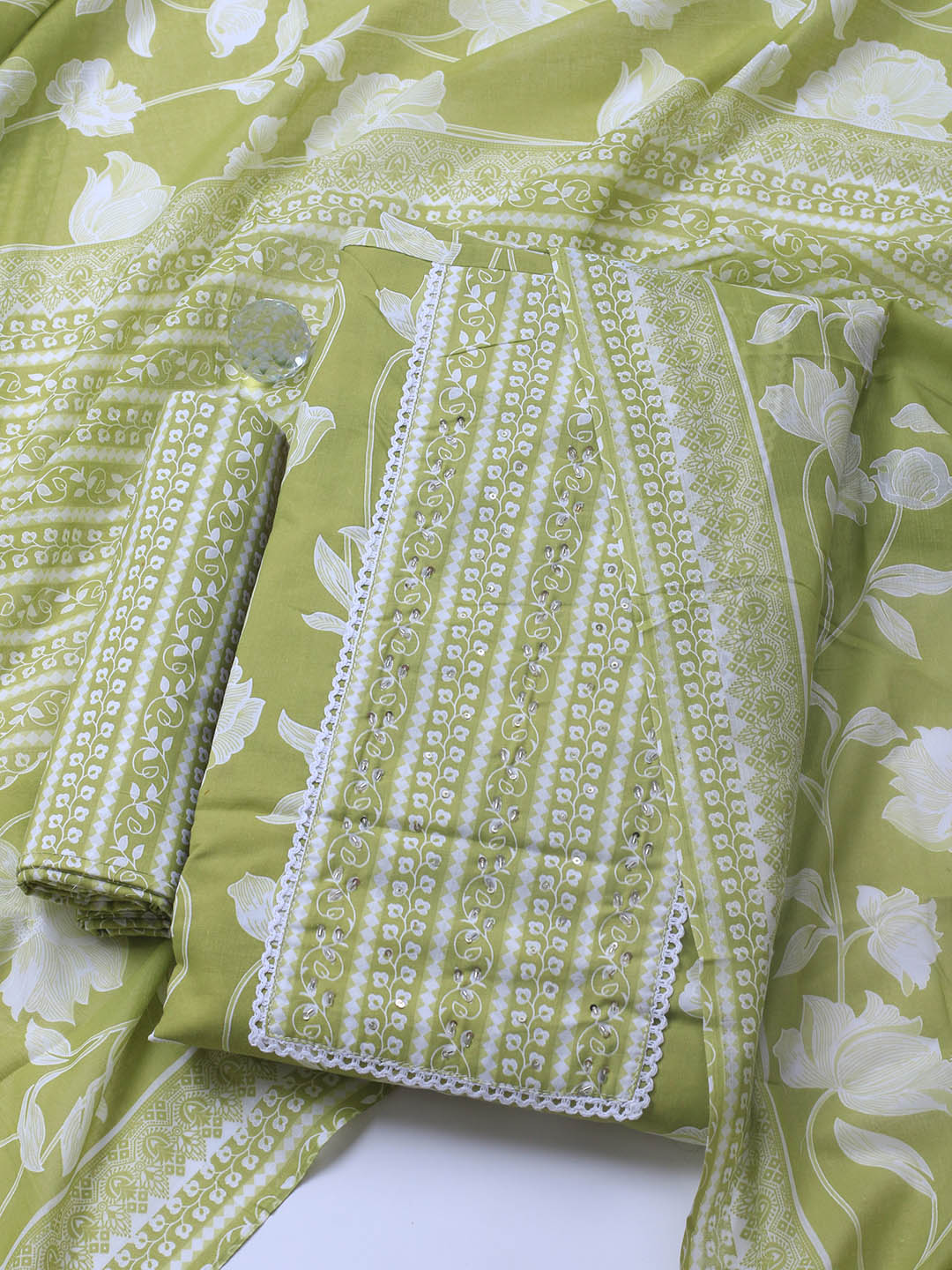 Printed Cotton Blend Unstitched Suit With Dupatta