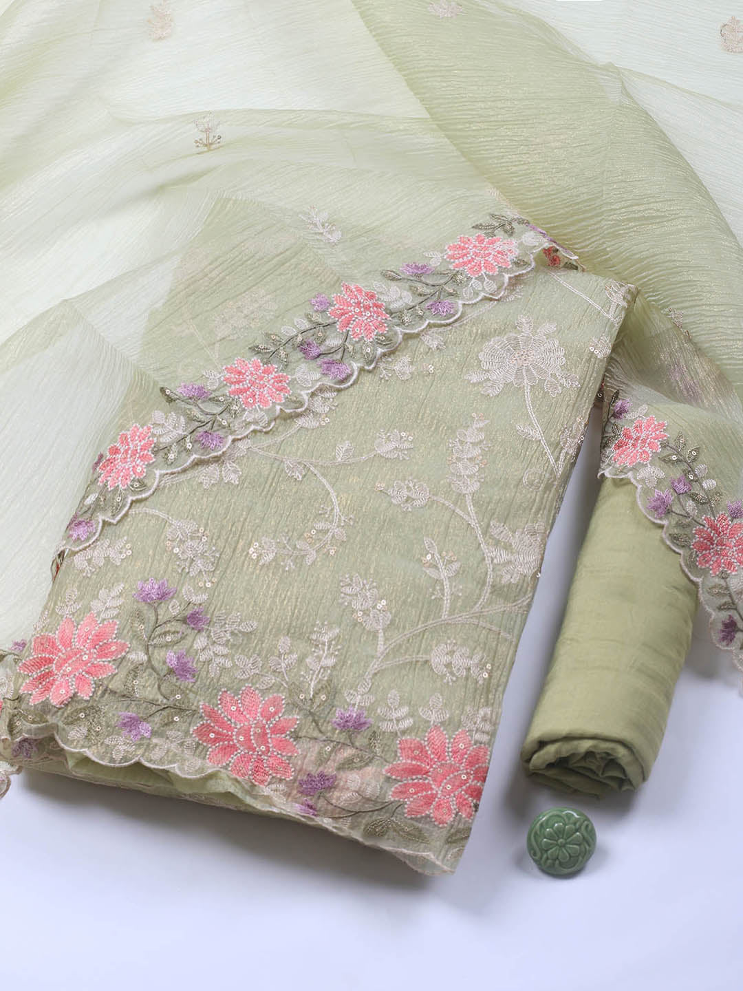 Neck Embroidery Organza Unstitched Suit Piece With Dupatta
