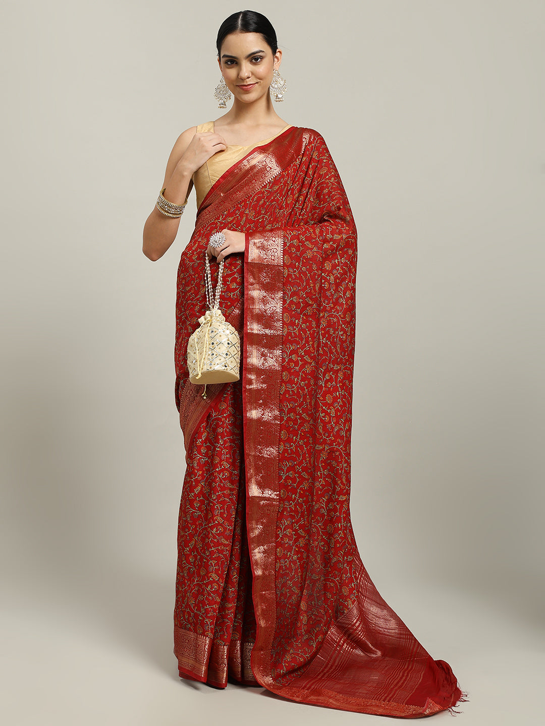 Note:The blouse shown in the pictures is just for Photoshoot purposes. The blouse you will get will be an attached running blouse.