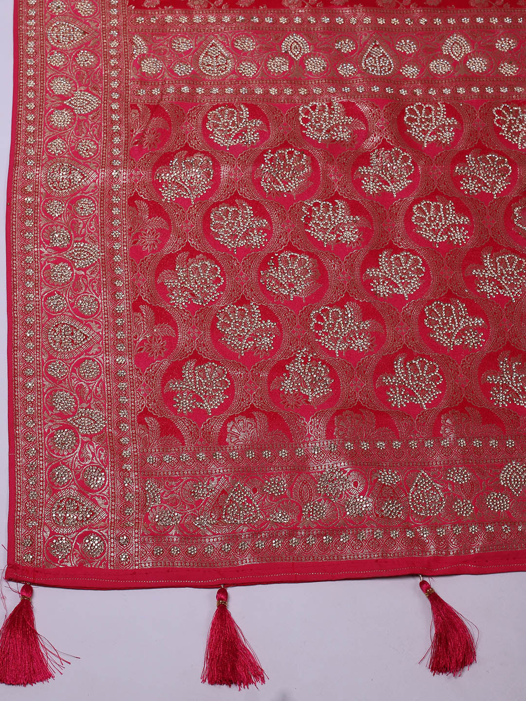 Embelished Satin Rani Saree