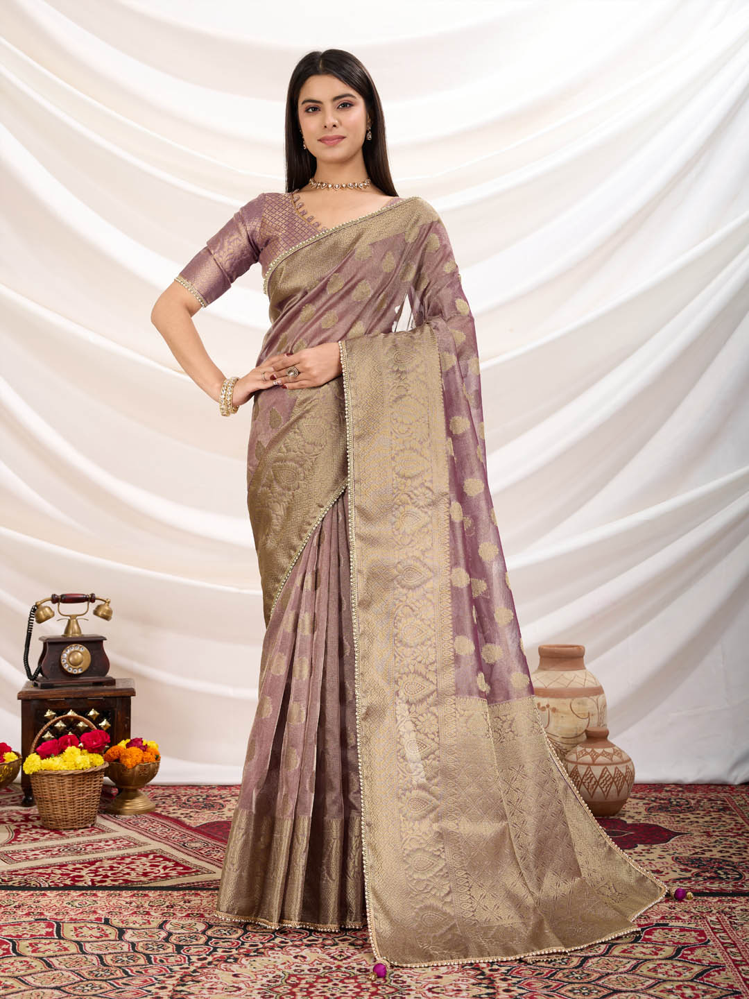 Note: The blouse shown in the pictures is just for Photoshoot purposes. The blouse you will get will be an attached running blouse.
