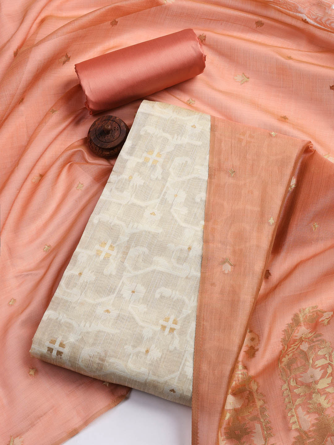 Jamdani Work Chanderi Unstitched Suit Piece With Dupatta