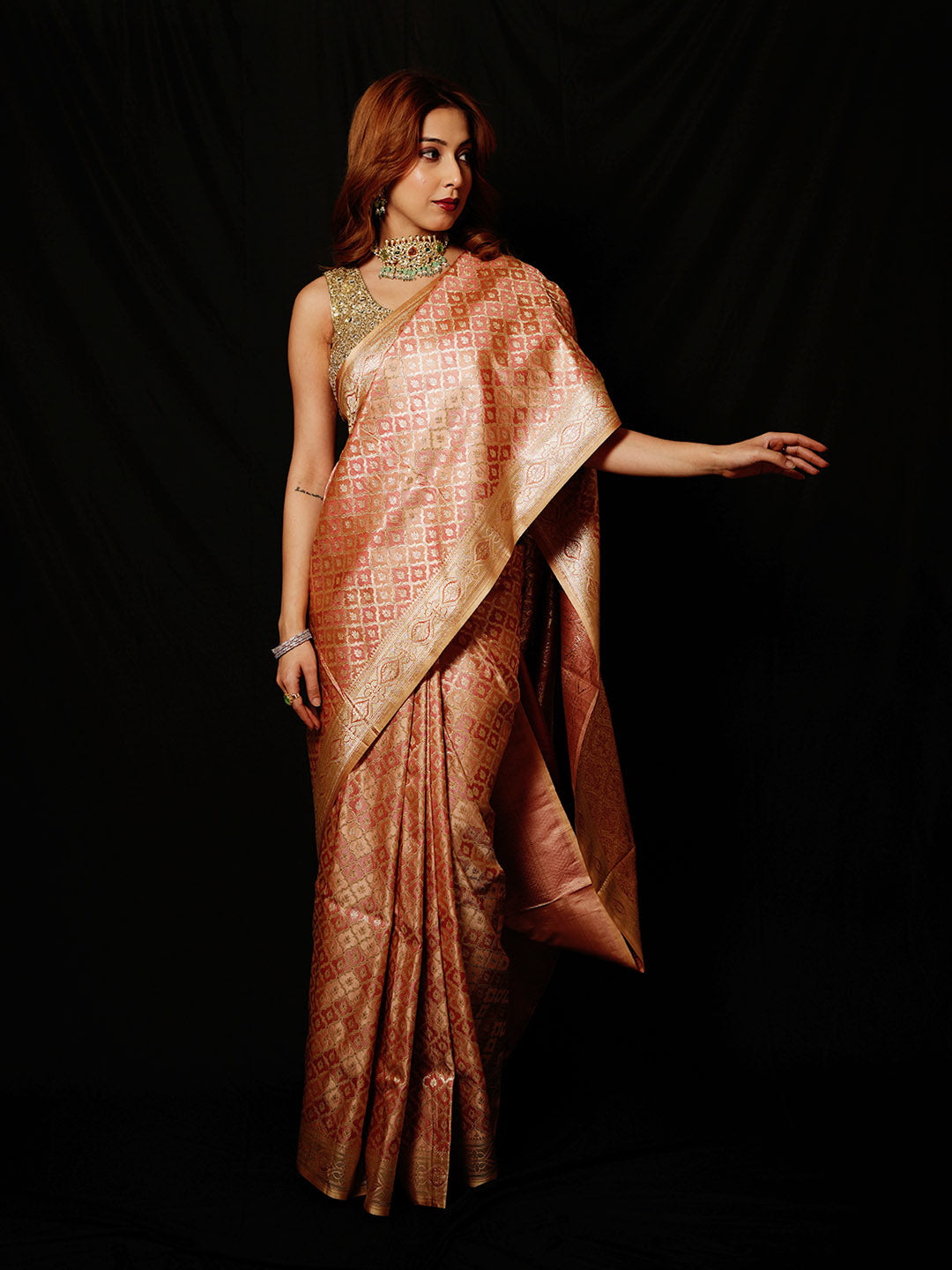 Note: The blouse shown in the pictures is just for Photoshoot purposes. The blouse you will get will be an attached running blouse.