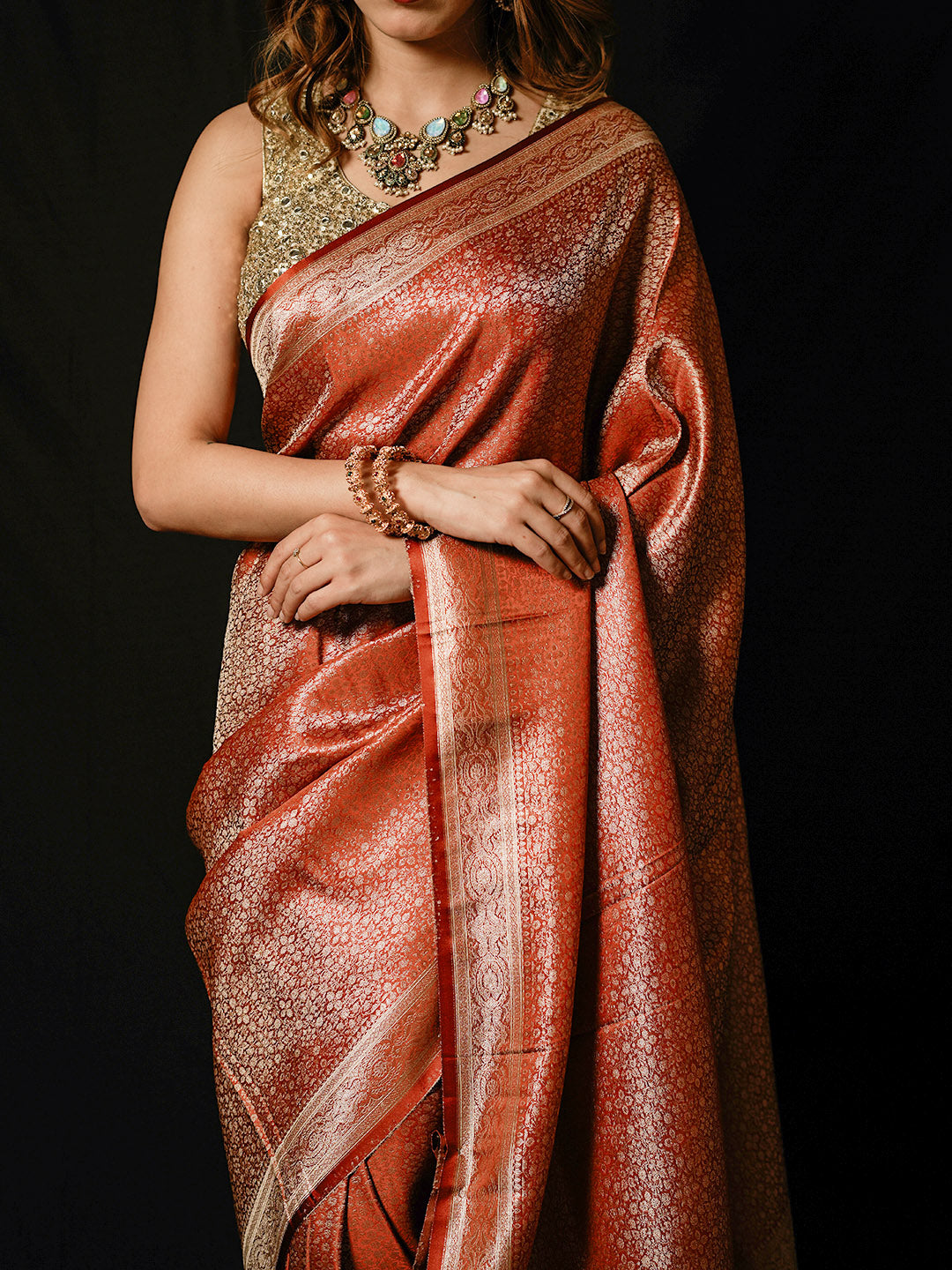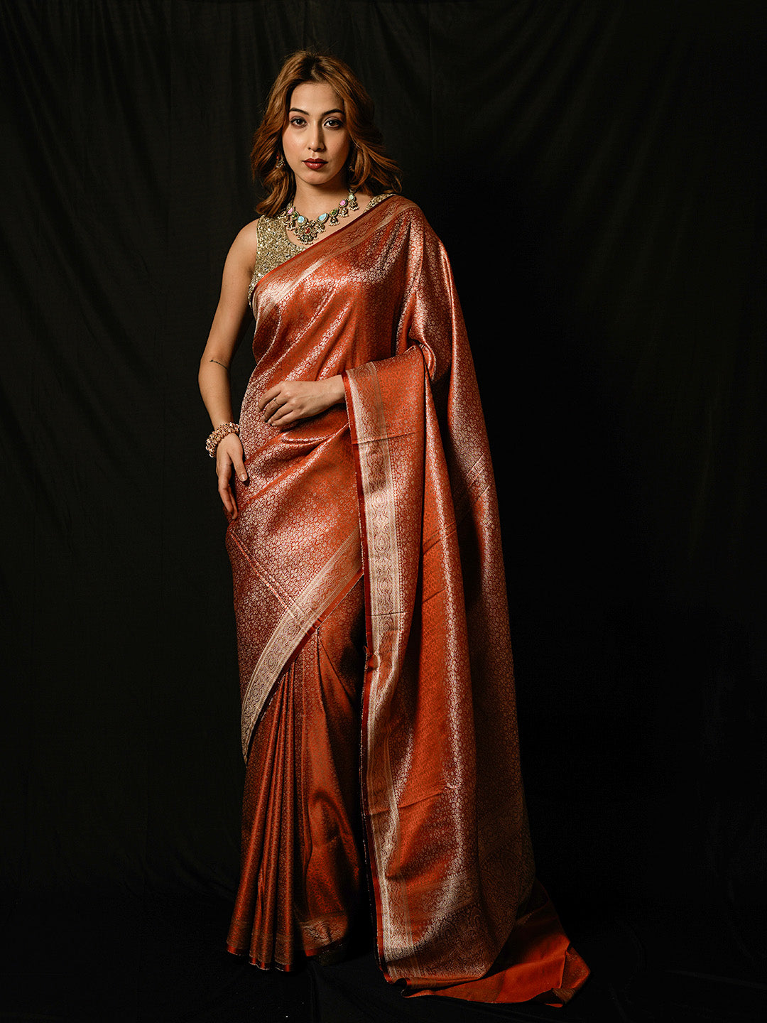 Note: The blouse shown in the pictures is just for Photoshoot purposes. The blouse you will get will be an attached running blouse.